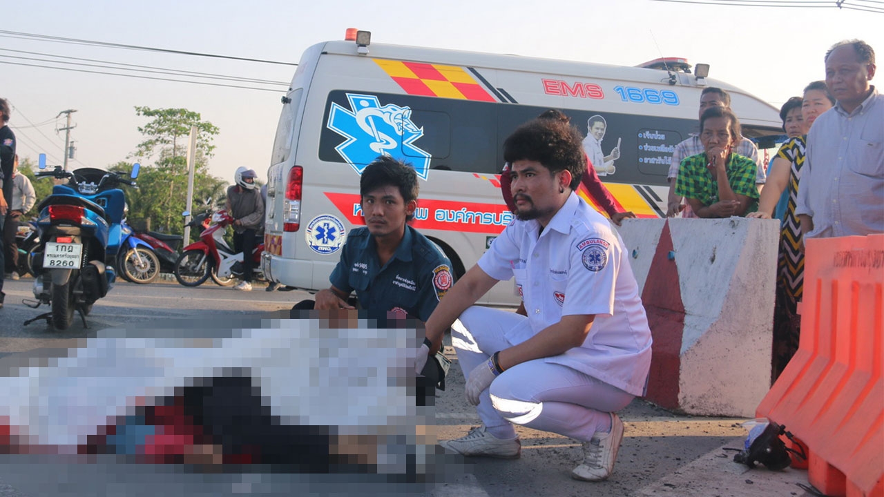 นักศึกษาหนุ่ม วิทยาลัยเทคนิคพระนครศรีอยุธยา ขี่ จยย.กลับบ้านตอนเย็น มีรถบัสรับส่งพนักงานลงสะพานแล้วเบียดจะออกซ้าย พุ่งชนเต็มแรง ล้มหัวฟาดถนนตายคาที่ ส่วนคนขับรถบัสไม่หนี รอมอบตัวในที่เกิดเหตุ...