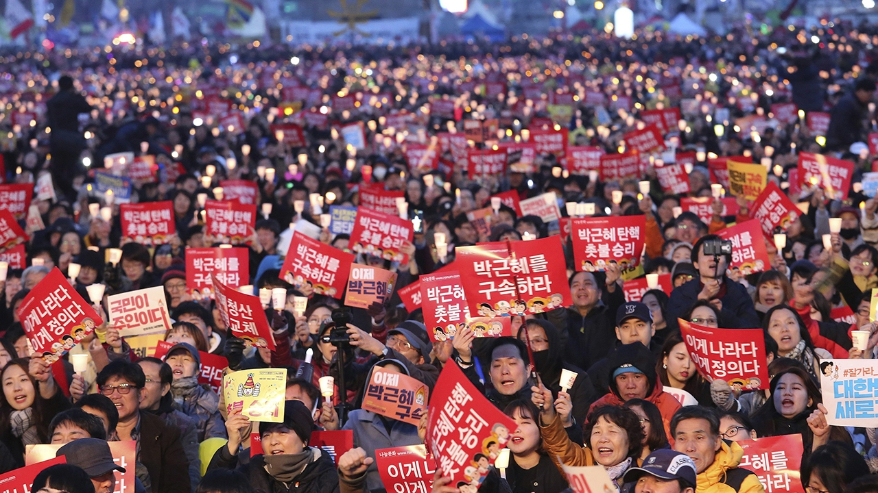 สำนักข่าวต่างประเทศรายงานว่า ฝ่ายต่อต้านน.ส. ปาร์ก กึน-เฮ อดีตประธานาธิบดีเกาหลีใต้ ออกมาชุมนุมในกรุงโซลอย่างต่อเนื่องในวันเสาร์ เพื่อเรียกร้องให้มีการจับกุมเธอ หลังจากน.ส.ปาร์ก ถูกถอดถอนออกจากตำแหน่งเมื่อวันศุกร์ จากข่าวอื้อฉาวเกี่ยวกับการคอร์รัปชัน โดยมีการเฉลิมฉลอง ทั้งจุดพลุและร้องรำทำเพลงด้วย