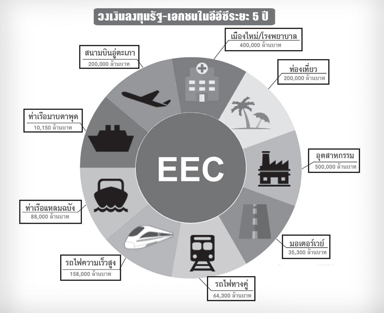 โดยจะต้องมีการลงทุนเพื่อพัฒนาโครงสร้างพื้นฐานรองรับ โดยเชิญชวนให้เอกชนเข้ามาลงทุนที่ครอบคลุม 4 โมดูล 15 โครงการ ใช้เม็ดเงินในการลงทุนในระยะ 5 ปีไม่ต่ำกว่า 1.5 ล้านล้านบาท