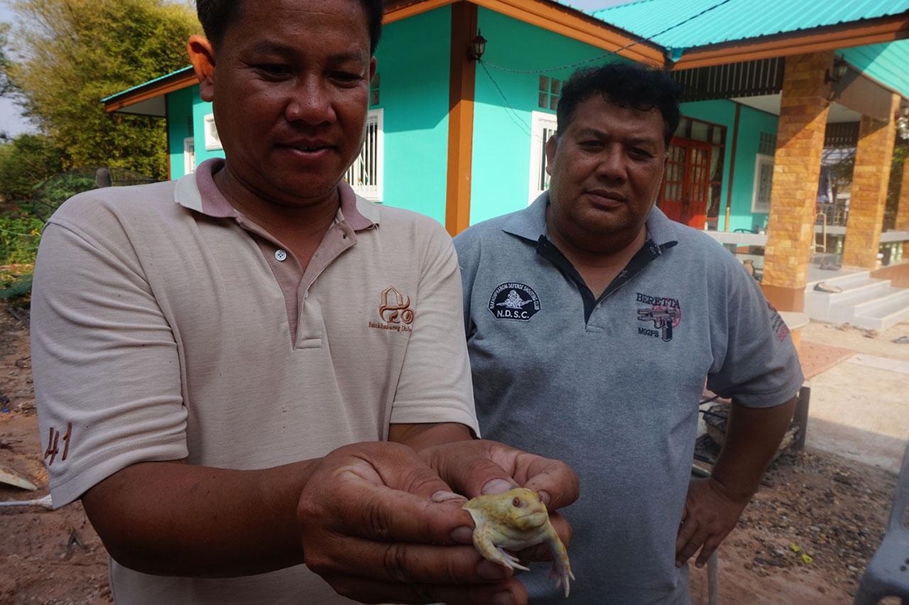 นายสุรชัย กล่าวว่า ในช่วง 2-3 วันที่ผ่านมา ได้มีฝนตกลงมาทำให้เป็นโอกาสดีของชาวบ้าน และตน ได้ออกมาจับอึ่งอ่าง ที่จะออกมาในช่วงตอนกลางคืน ไปขายสร้างรายได้เสริม ซึ่งถือเป็นวิถีชีวิตของชาวบ้าน แต่ครั้งนี้ได้ไปเจอ อึ่งอ่างแปลกผิดธรรมชาติ เพราะทั้งตัวเป็นสีเหลืองทองสวยงาม ผิดจากอึ่งอ่างทั่วไป จึงได้จับมาเลี้ยงไว้ในบ้าน พอชาวบ้านทราบข่าวต่างพากันแห่มาดู ซึ่งตนจะเลี้ยงไว้ เพราะเชื่อว่า เป็นอึ่งอ่างนำโชค ตามความเชื่อ