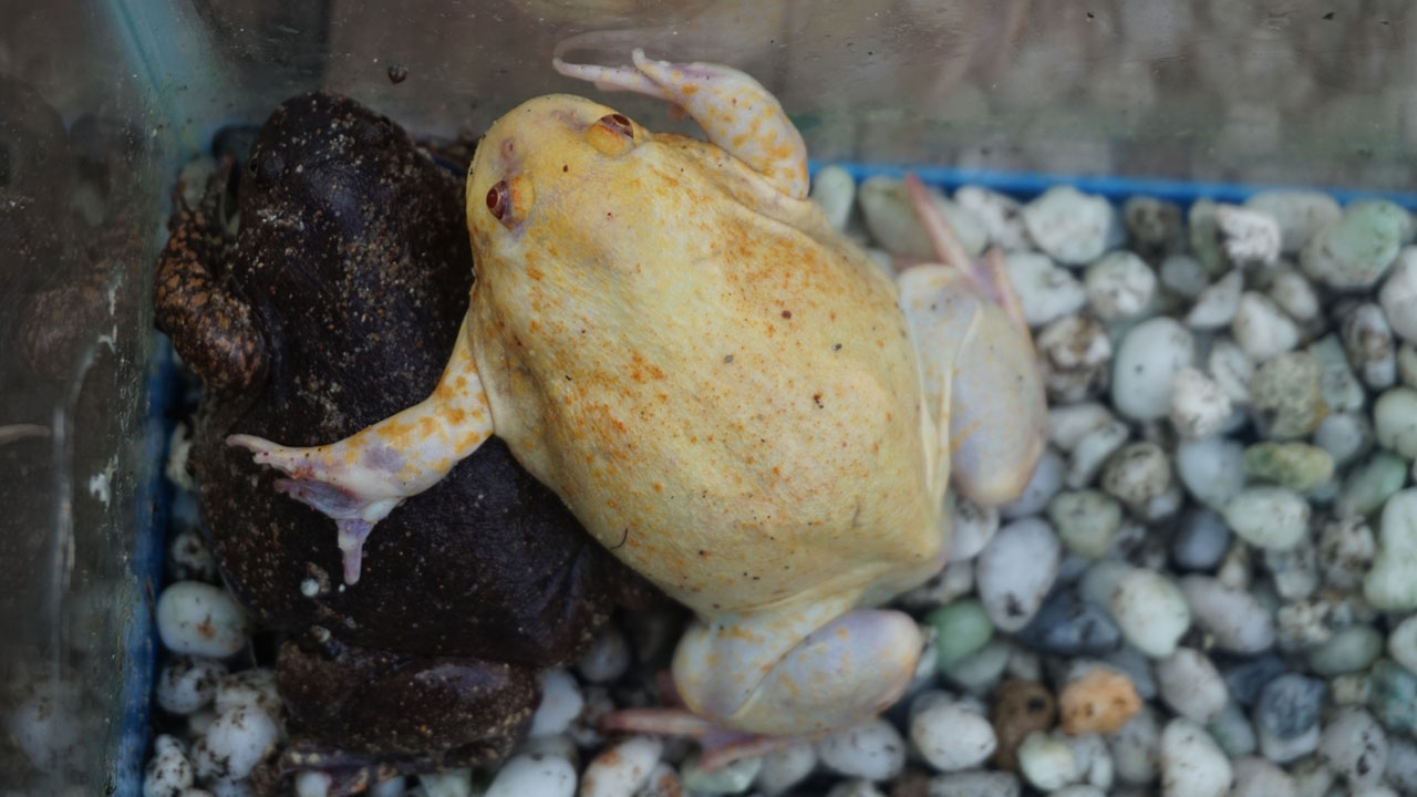 ชาวบ้านที่นครพนมฮือฮา พบอึ่งอ่างแปลกตัวสีทอง เชื่อเป็นพันธ์ุหายากหรือมีความผิดปกติทางสายพันธุกรรม ขอเลี้ยงไว้เป็นตัวนำโชค เพราะไม่เคยมีคนจับได้มาก่อน ด้านคอหวยนำเลขบ้านไปเสี่ยงโชคตามระเบียบ...