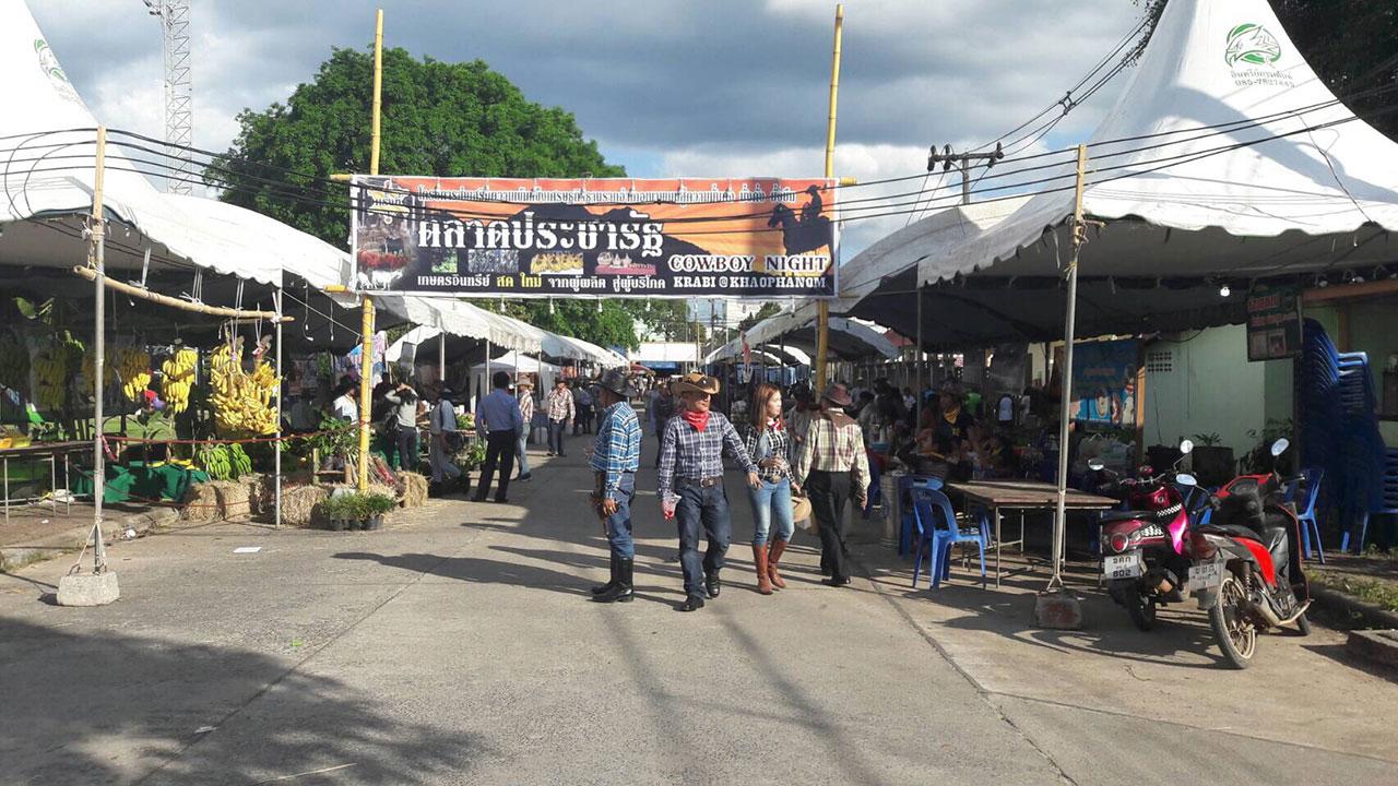สำหรับอำเภอเขาพนม ปัจจุบันสามารถผลิตสินค้าด้านการเกษตรเพื่อจัดส่งขายในพื้นที่และในตัวจังหวัด มีสินค้าที่หลากหลายบางชนิดสามารถขายได้นับล้านบาท เช่น กล้วยหอมทอง ผักตัดยอดแบบพื้นบ้าน ผักสลัด การเลี้ยงแพะ วัว ซึ่งตลาดมีความต้องการสูง ทางจังหวัดได้เข้ามาส่งเสริม และเพิ่มพื้นที่จำหน่ายเพื่อขายตรงถึงผู้บริโภค โดยขณะนี้สามารถนำไปขายตามตลาดต่างๆ ของภาครัฐในรูปแบบตลาดประชารัฐได้เกือบทั้งสัปดาห์ ส่วนการให้ชาวบ้านผู้ขายแต่งตัวเป็นคาวบอยนั้น ก็เนื่องจากอำเภอเขาพนม มีการยกระดับเป็นเมืองเกษตร และการท่องเที่ยวเชิงนิเวศ ซึ่งสามารถดึงดูดนักท่องเที่ยวให้เข้าพื้นที่ได้อีกทางหนึ่ง.