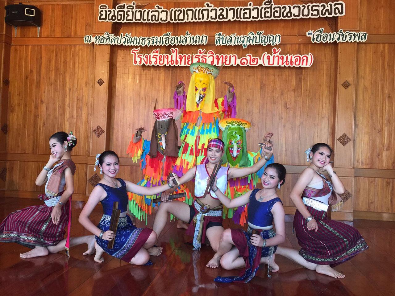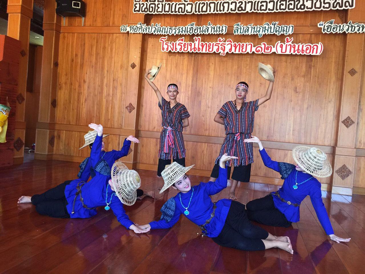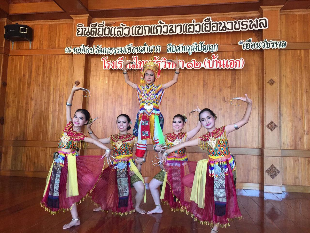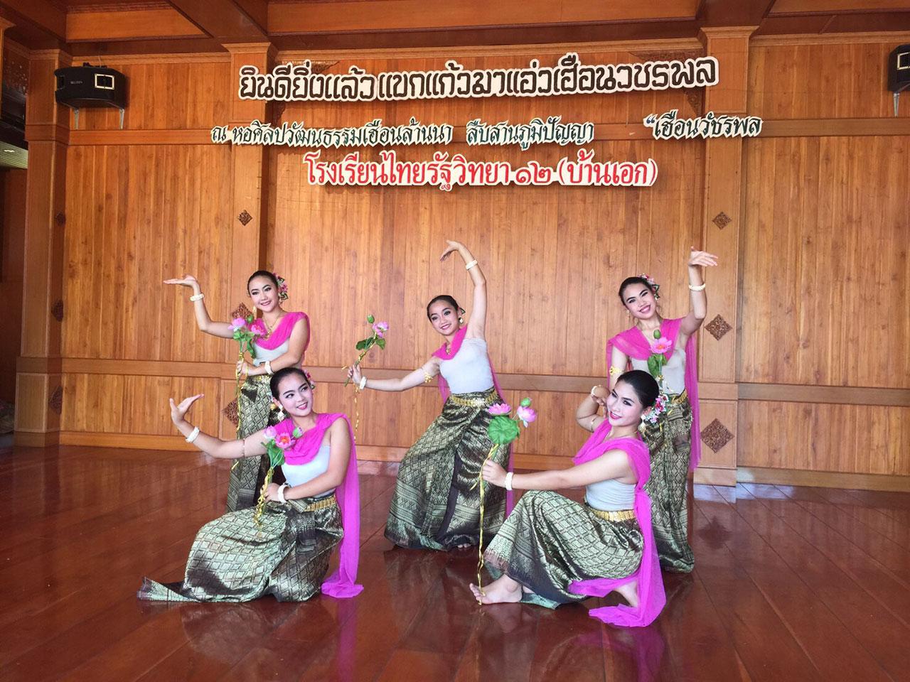 นางอารีย์ คะโยธา ผู้อำนวยการโรงเรียนไทยรัฐวิทยา 12 (บ้านเอก) ได้นำคณะครูนาฏศิลป์มาให้การต้อนรับ พร้อมนำเยี่ยมชมผลงานรางวัลต่างๆ ที่ได้รับมากมาย โดยบรรยายสรุปให้ฟังว่าโรงเรียนไทยรัฐวิทยา 12(บ้านเอก) ได้จัดตั้งหอศิลปวัฒนธรรม เพื่อส่งเสริมด้านวัมนธรรมและนาฏศิลป์ มีนักเรียนระดับชั้นต่างๆเรียนนาฏศิลป์ประมาณ 100 คน พร้อมทั้งส่งเสริมให้ไปแสดงและเข้าประกวดในระดับนานาชาติและระดับประเทศ ได้ครองแชมป์นาศิลป์ระดับประเทศ ครองถ้วยพระราชทาน สมเด็จพระนางเจ้าสิริกิติ์ พระบรมราชินี นาถ ในรัชกาลที่ 9 ติดต่อกัน 8 ปีซ้อน ปีล่าสุดคือปี 2559 และในปี 2559 ยังคว้ารางวัลระดับประเทศมาได้อีก 8 รางวัล