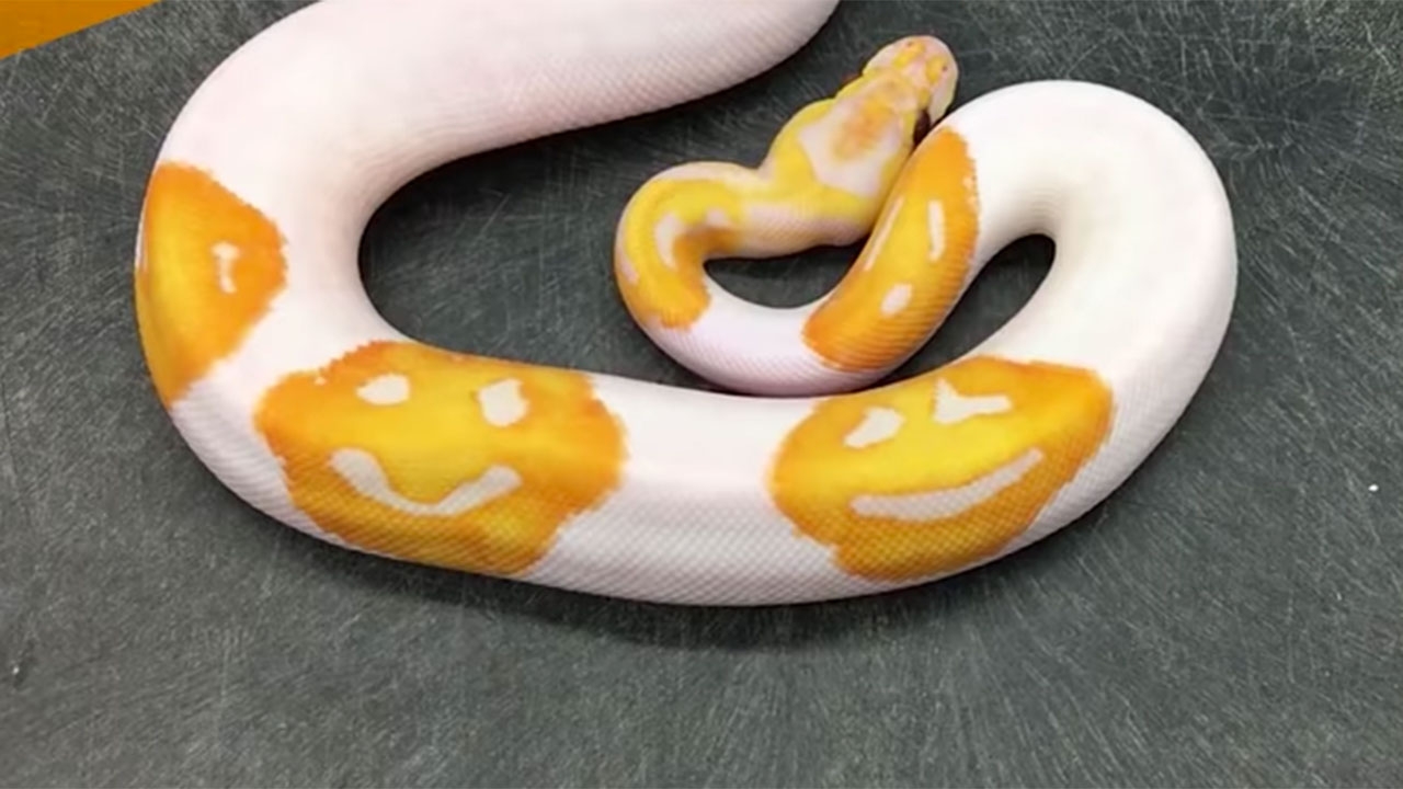 ต้องขยี้ตา ยันไม่ใช่งูปลอม..งูเหลือมเผือก ลายอิโมจิส่งยิ้ม หนึ่งเดียวในโลก หลังนักเพาะพันธุ์งูใช้เวลานานถึง 8 ปี กว่าจะรังสรรค์งูเหลือมออกมาสุดประหลาด จนมีลายอิโมจิ สีเหลือง ยิ้มแฉ่งบนลำตัว