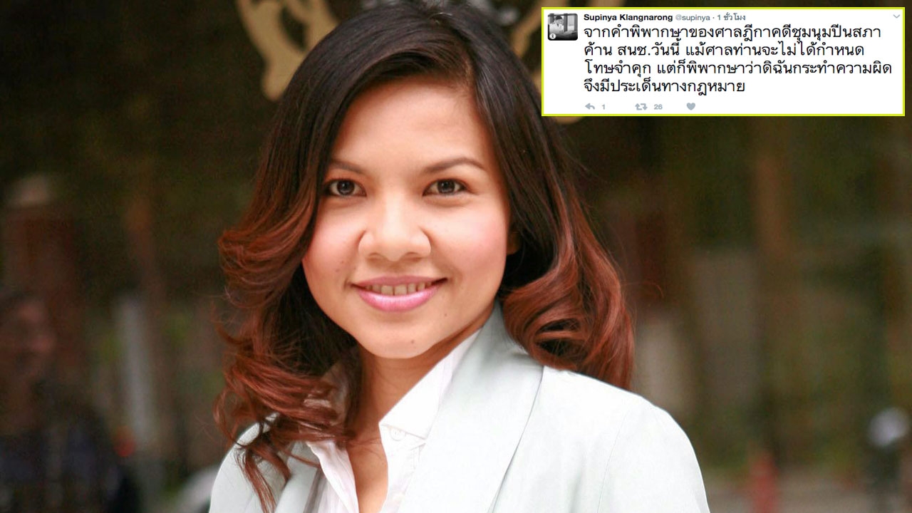 ล่าสุด น.ส.สุภิญญา กสทช. ได้โพสต์ข้อความผ่านทวิตเตอร์ส่วนตัว @supinya ระบุว่า "จากคำพิพากษาของศาลฎีกาคดีชุมนุมปีนสภาค้าน สนช.วันนี้ แม้ศาลท่านจะไม่ได้กำหนดโทษจำคุก แต่ก็พิพากษาว่าดิฉันกระทำความผิด จึงมีประเด็นทางกฎหมาย วันนี้ดิฉันจะทำบันทึกแจ้งเลขาธิการ กสทช. ถึงคำพิพากษาให้ สนง. ตีความกฎหมาย โดยตั้งแต่วันนี้ดิฉันจะยุติการปฏิบัติหน้าที่ไปก่อน (ไม่รับค่าตอบแทน) ถ้าการตีความออกมาว่าไม่ขัดคุณสมบัติ ก็ค่อยกลับมาปฏิบัติหน้าที่ต่อ แต่ถ้าขัดก็ถือว่าสิ้นสภาพการเป็น กสทช.ตามกฎหมายตั้งแต่วันนี้เป็นต้นไปค่ะ ส่วนตัวตีความว่าขัด พ.ร.บ.กสทช. เพราะศาลฎีกาพิพากษาว่าดิฉันทำความผิดฐานชุมนุมค้าน สนช. แม้ว่าจะยังไม่มีโทษจำคุก จึงตัดสินใจขอยุติการทำหน้าที่ ดิฉันน้อมรับคำพิพากษาสูงสุดของศาลฎีกาในวันนี้ แม้จะยืนยันว่าสิ่งที่ทำเป็นสิทธิ เสรีภาพในการชุมนุมโดยสงบ และขอบคุณทุกท่านที่ให้กำลังใจตลอดมา สรุป ก็รอให้ กสทช.ทำการตีความออกมาเป็นทางการ ระหว่างนี้ดิฉันก็หยุดปฏิบัติหน้าที่ พร้อมเก็บของรอไปพลางก่อน มีเอกสารต้องเคลียร์จำนวนมาก ระหว่างการยุติการปฏิบัติหน้าที่ ดิฉันและทีมก็ไม่รับค่าตอบแทนใดตั้งแต่วันนี้ และจะทำเรื่องส่งคืนทรัพย์สินที่ถือครองในการทำงานคืนโดยเร็ว