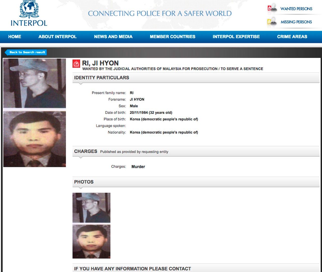 หมายแดงที่อินเทอร์โพลโพสต์ลงบนเว็บไซต์ของพวกเขา แสดงให้เห็นภาพของชายชาวเกาหลีเหนือ 4 คน ซึ่งมีอายุระหว่าง 32-56 ปี และระบุชื่อว่า ฮง ซง-ฮัค, รี จี-ฮยอน, โอ จอง-กิล และ รี แจ-นัม