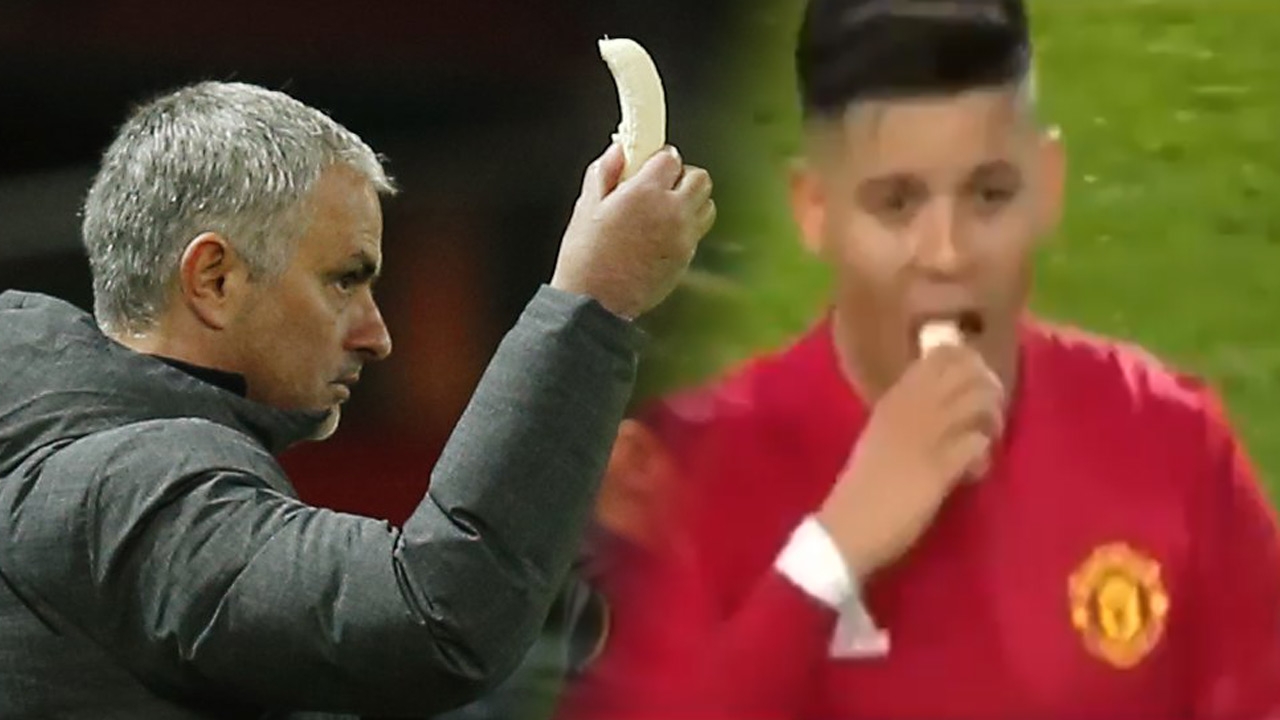 แบบนี้ก็ได้เหรอสำหรับ มาร์กอส โรโฮ ปราการหลังของผีแดง ที่ต้องการเพิ่มพลังอย่างรวดเร็ว รไปขอกล้วยหอมจาก โชเซ มูรินโญ ระหว่างเกมก่อนจะเดินกินกลางสนามหน้าตาเฉย...