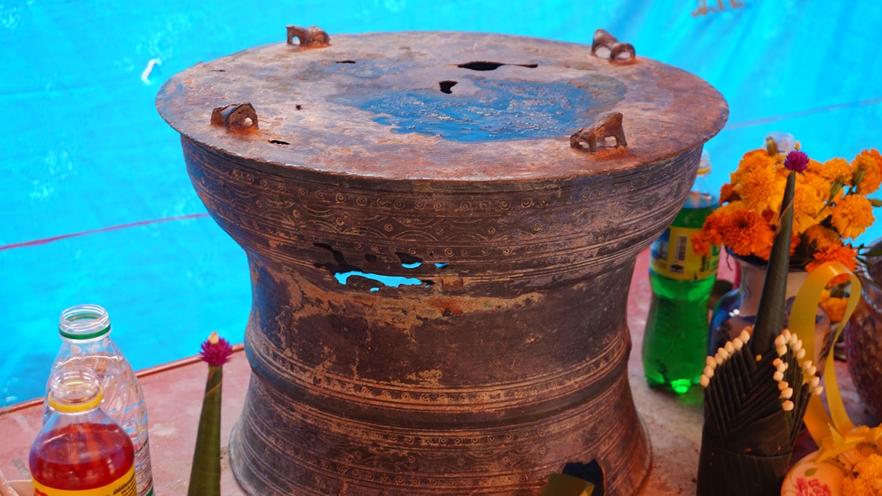 นักโบราณคดี กรมศิลปากร ตรวจสอบกลองสัมฤทธิ์โบราณ หลังขุดพบในที่ดินที่นครพนม เผย อายุราว 1,500 ปี พบข้อมูลเป็นกลองที่ใช้ในพิธีศักดิ์สิทธิ์ เตรียมขึ้นทะเบียนเป็นสมบัติชาติ