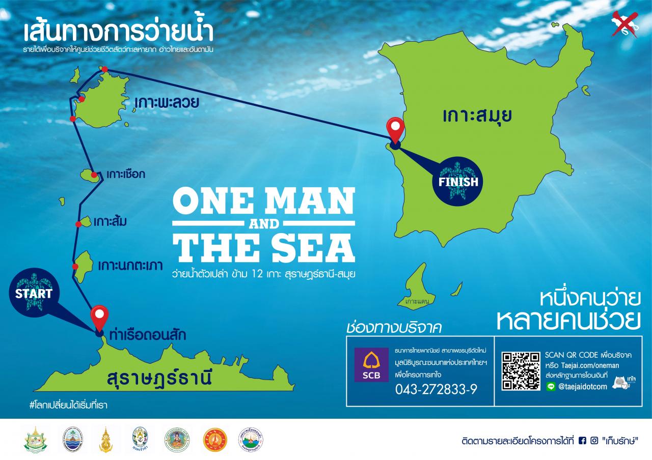 ชื่อโครงการ ONE MAN & THE SEA หนึ่งคนว่าย หลายคนช่วย ว่ายน้ำตัวเปล่า ข้าม 12 เกาะ เริ่มต้นจากจังหวัดสุราษฎร์ธานี ไปสิ้นสุดที่เกาะสมุย รวมระยะทาง 82 กิโลเมตร ในวันที่ 19 มีนาคม 2563 ตั้งเป้าสิ้นสุดวันที่ 5 เมษายน 2563 นอกจากว่ายแล้วยังช่วยเก็บขยะในชุมชนและริมชายหาดไปพร้อมกับชาวบ้านในพื้นที่เส้นทางการว่าย เพื่อร่วมเป็นส่วนหนึ่งในการสร้างโลกที่น่าอยู่