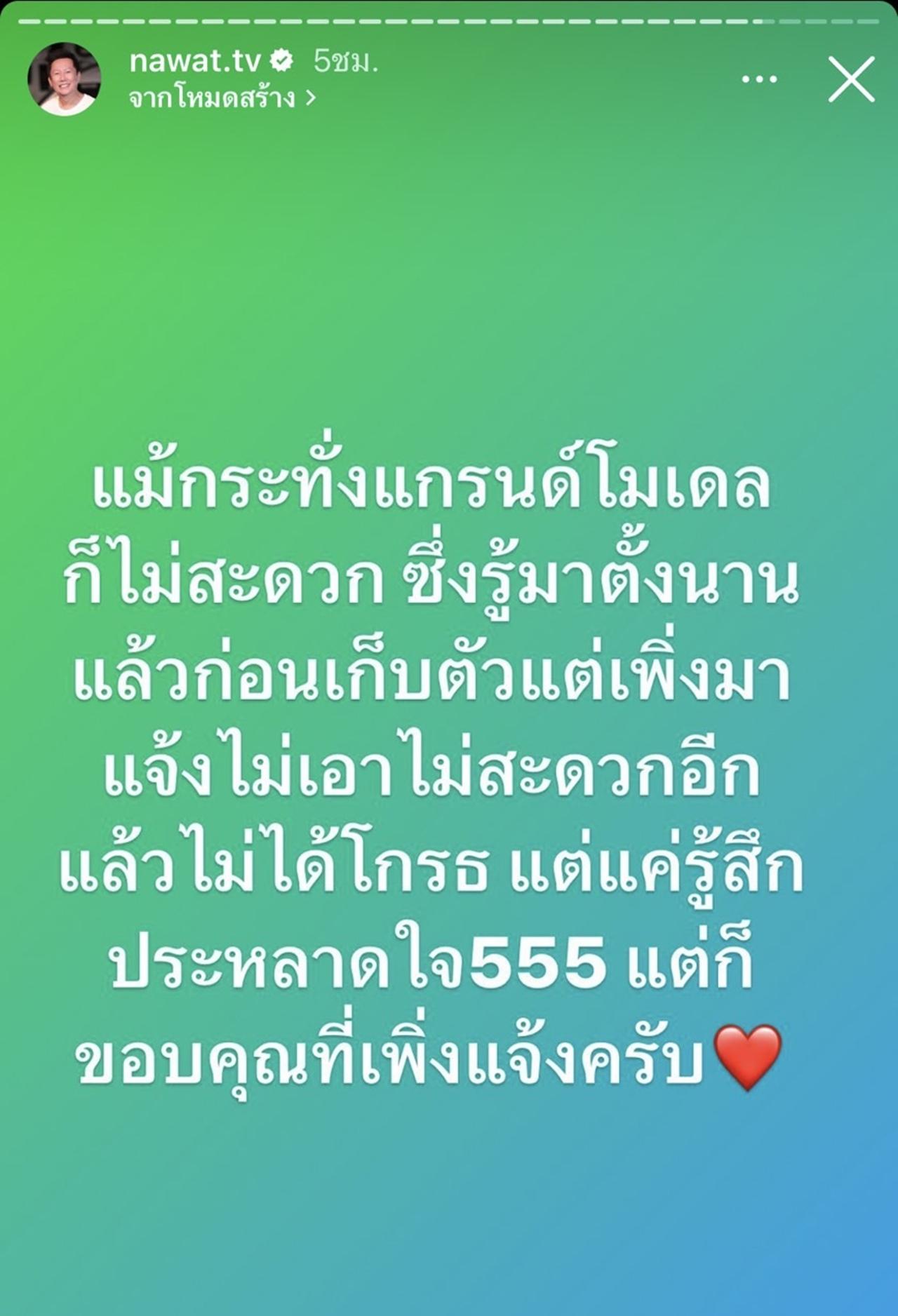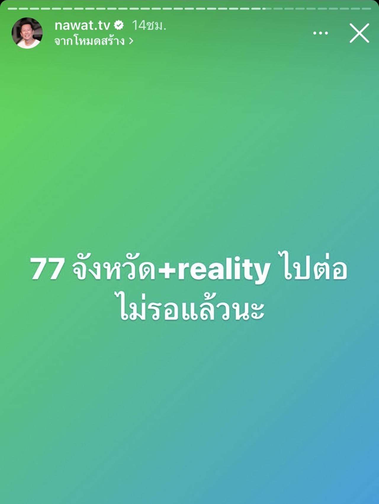 ล่าสุด ณวัฒน์ ได้โพสต์ข้อความผ่านไอจีสตอรี่ระบุว่า "77 จังหวัด+reality ไปต่อไม่รอแล้วนะ", "จะดราม่าไปทำไม MGT บอกมาทุกปีแล้วว่าเราหานางงามพร้อมใช้"