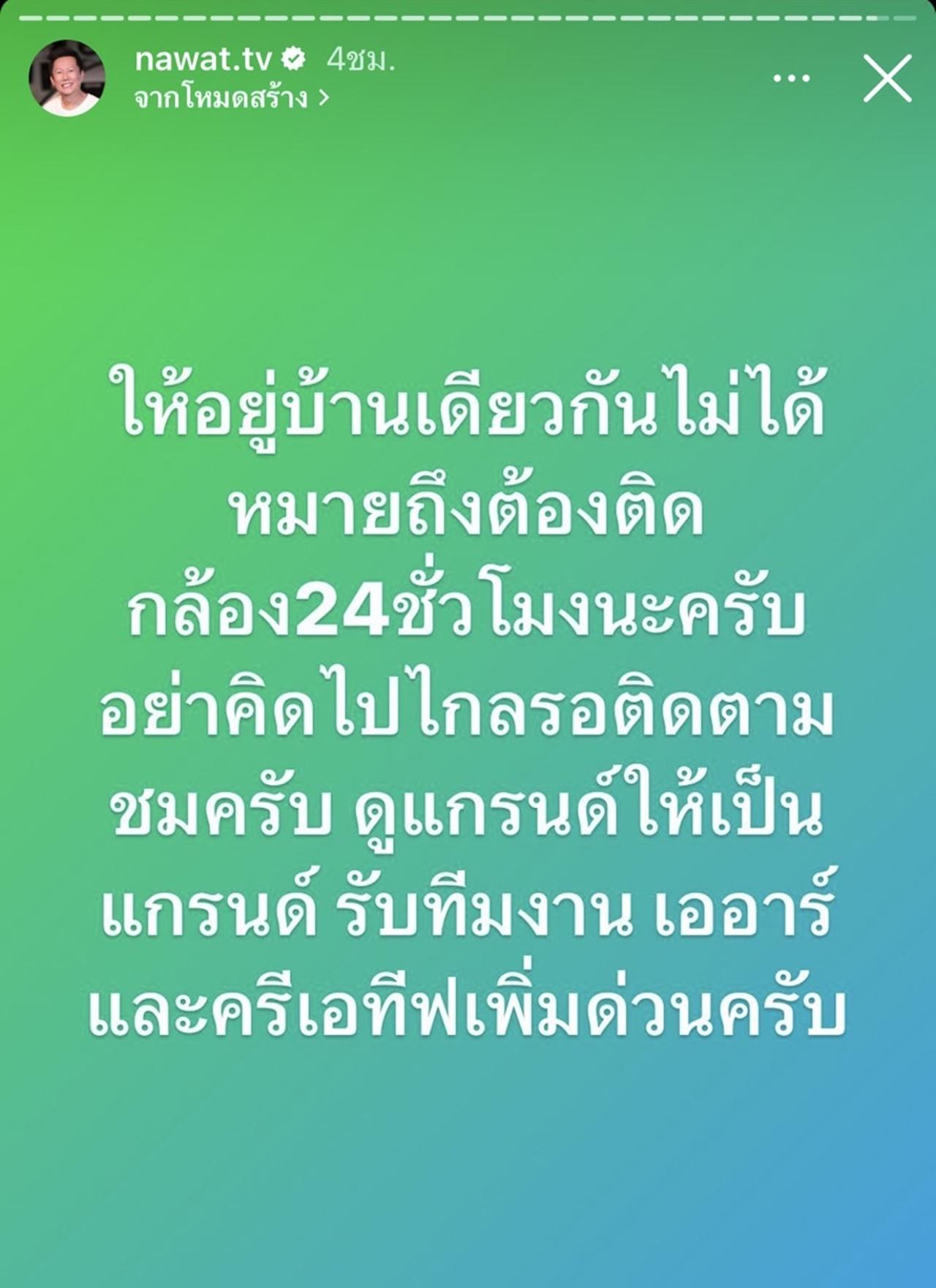 จากนั้น ณวัฒน์ ก็ได้โพสต์ข้อความต่อไปว่า "ใครอยากมีงานใครอยากมีเงินทางเราก็จะหาวิธีดันให้ดังจนสุดตัว แต่ถ้าใครแอบมีครอบครัวต้องกลับไปดูแลพักก่อนก็ได้555" , "ยังคงตอกย้ำแกรนด์หาคนพร้อมใช้" , "แม้กระทั่งแกรนด์โมเดลก็ไม่สะดวก ซึ่งรู้มาตั้งนานแล้วก่อนเก็บตัว แต่เพิ่งมาแจ้งไม่เอาไม่สะดวกอีก แล้วไม่ได้โกรธ แต่แค่รู้สึกประหลาดใจ555 แต่ก็ขอบคุณที่เพิ่งแจ้งครับ" และ "ให้อยู่บ้านเดียวกันไม่ได้หมายถึงต้องติดกล้อง 24 ชั่วโมงนะครับ อย่าคิดไปไกลรอติดตามชมครับ ดูแกรนด์ให้เป็นแกรนด์ รับทีมงาน เออาร์และครีเอทีฟเพิ่มด่วนครับ"