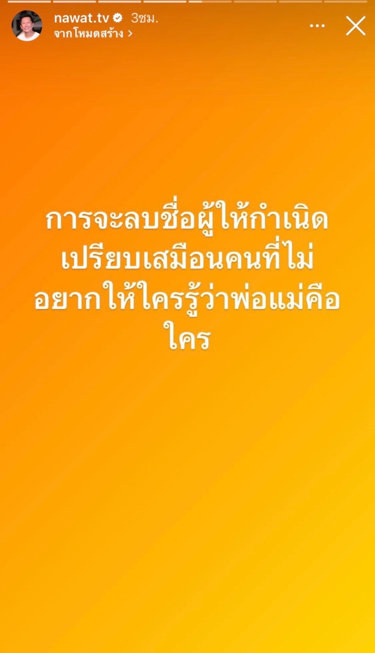 และ "การจะลบชื่อผู้ให้กำเนิด เปรียบเสมือนคนที่ไม่อยากให้ใครรู้ว่าพ่อแม่คือใคร" ก่อนจะโพสต์ภาพและข้อความของ บิวตี้ วรัญชนา ระดมเล็ก มิสแกรนด์ขอนแก่น 2022 ที่โพสต์เอาไว้ในเฟซบุ๊กของตัวเองว่า "ไม่เคยลืมว่ามาจากไหน รักเสมอ" ก่อนณวัฒน์จะเขียนข้อความว่า "คนแบบนี้ช่วยแล้วไม่เคยเสียใจมีแต่รอยยิ้ม".