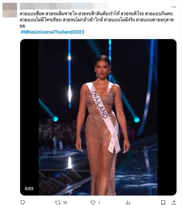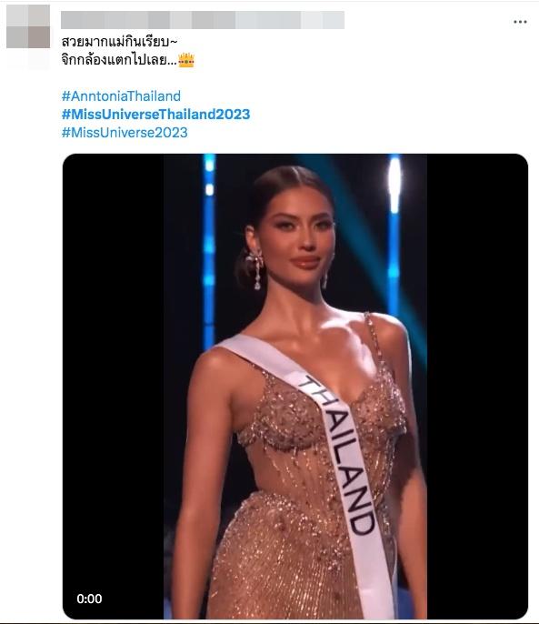 ทำเอาบรรดาแฟนๆ นางงามต่างแชร์ภาพและคลิปของ แอนโทเนีย พร้อมทั้งติดแฮชแท็ก #MissUniverseThailand2023 จนติดเทรนด์ทวิตเตอร์อันดับ 1 อย่างต่อเนื่อง และเขียนข้อความ อาทิ สวยมากแม่กินเรียบ~ จิกกล้องแตกไปเลย…, สวยแบบช็อก สวยจนลืมหายใจ สวยจนฟ้าดินต้องร่ำไห้ สวยจนพิโรธ สวยแบบกินคน สวยแบบไม่มีใครเทียบ สวยจนไม่กล้าเข้าใกล้ สวยแบบไม่มีจริง สวยแบบตายยกุตายยย, สวยเหมือนไม่มีอยู่จริงตั้งแต่เส้นผมจรดปลายเท้า ฯลฯ