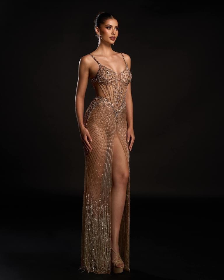 และในรอบชุดราตรี (Evening Gown) แอนโทเนีย สาดความสวยสะกดใจในชุดราตรีที่เป็นผลงานการออกแบบของแบรนด์สัญชาติไทย Valentier Atelier มาพร้อมท่าเดินและโพสด้วยความมั่นใจ สวยสง่าแบบสุดๆ