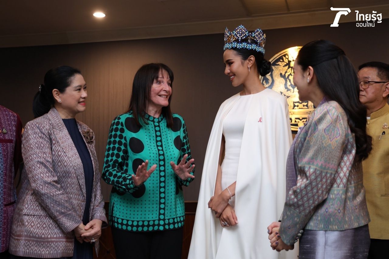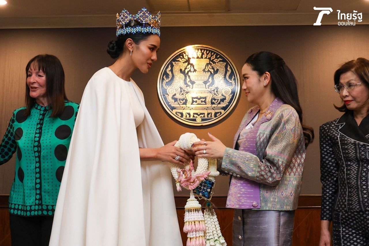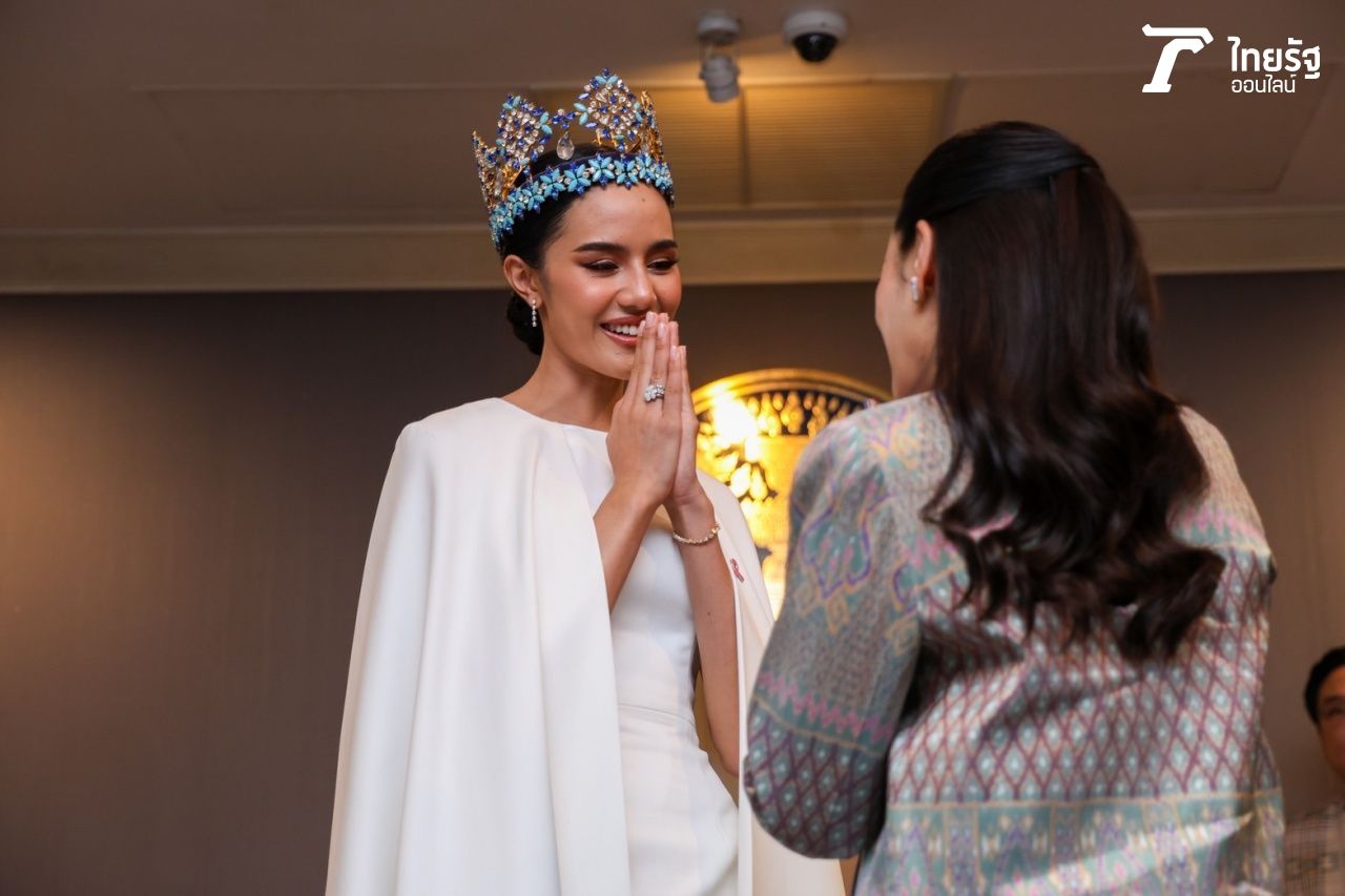 ในวันนี้ โอปอล สุชาตา มาในลุคสวยสง่าเดรสยาวสีขาว พร้อมคณะ เดินทางเข้าพบ นายกรัฐมนตรี แพทองธาร ชินวัตร ณ ตึกบัญชาการ 1 ทำเนียบรัฐบาล ก่อนการประชุม ครม. โดยนายกฯ กล่าวแสดงความยินดีและชื่นชมที่สร้างชื่อเสียงให้ประเทศไทยบนเวทีโลก
