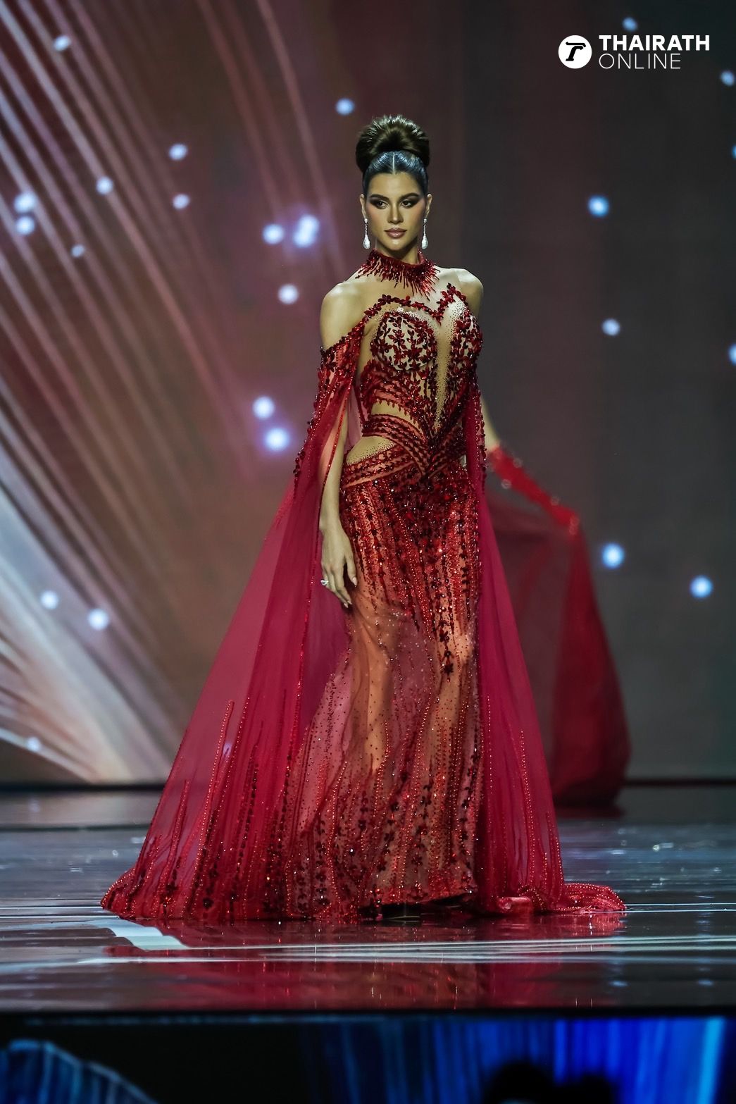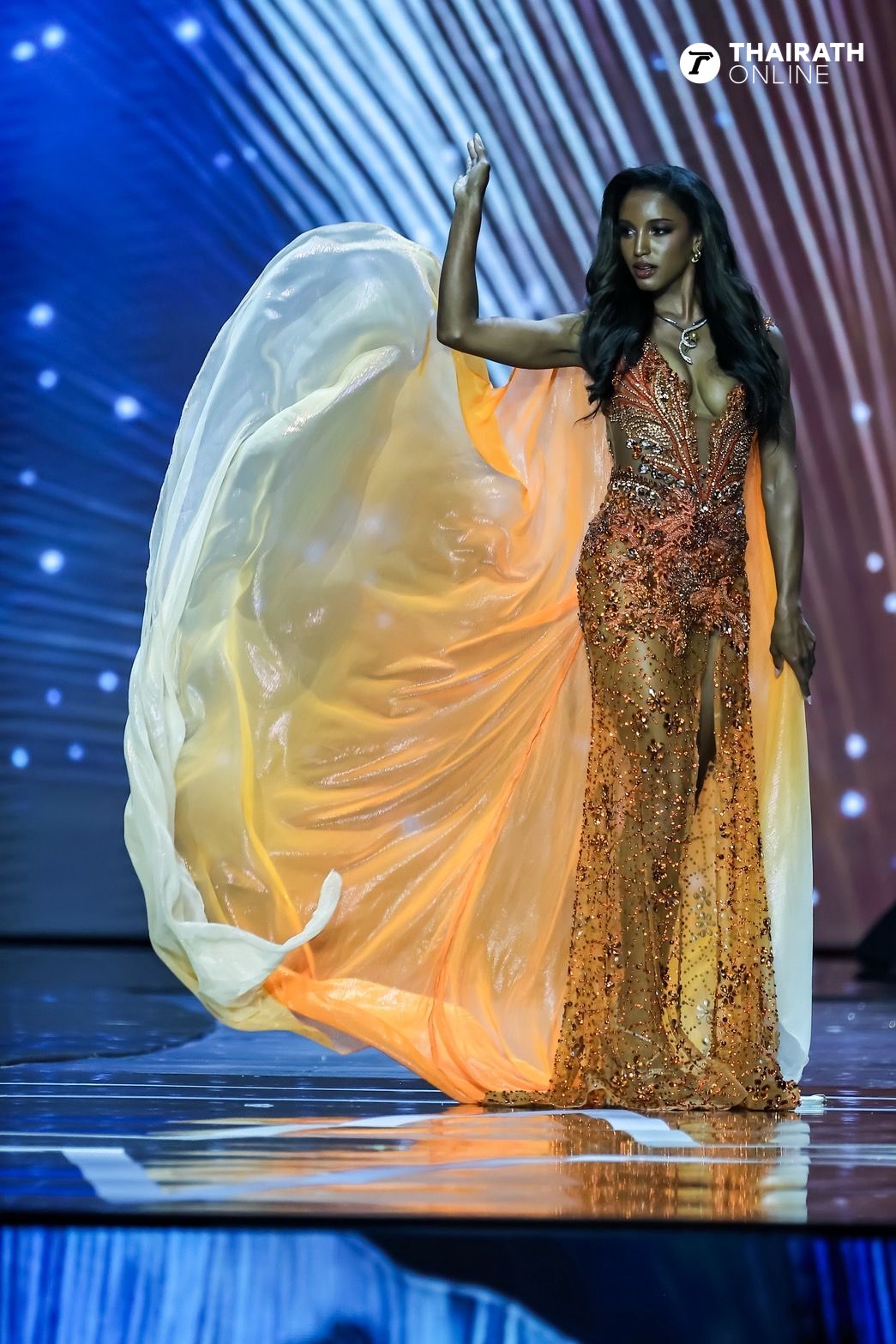 โดยในรอบชุดว่ายน้ำ (Swimsuit Competition) ผู้เข้าประกวดต่างโชว์ความมั่นใจ และเสน่ห์เฉพาะตัว ผ่านจังหวะการเดิน และการโพส ที่แข็งแรง สง่างาม เรียกเสียงปรบมือจากผู้ชมตลอดการแสดง ส่วนในรอบชุดราตรี (Evening Gown Competition) สาวงามแต่ละประเทศปรากฏตัวในชุดราตรีดีไซน์พิเศษที่ถูกสร้างสรรค์โดยดีไซเนอร์ชื่อดัง ถ่ายทอดเสน่ห์ ความหรูหรา และเอกลักษณ์ของตนเองได้อย่างลงตัว จนทำเอาแฟนๆ ที่รับชมในฮอลล์ ปรบมือ และส่งเสียงเชียร์ไม่ขาดสาย ด้านตัวแทนสาวไทย วีนา ปวีนา ซิงห์ ทำผลงานโดดเด่นทั้งสองรอบ ด้วยบุคลิกมั่นใจและการนำเสนอที่มีพลัง ทำให้บรรยากาศในฮอลล์เต็มไปด้วยเสียงเชียร์จากแฟน ๆ ชาวไทยและต่างชาติอย่างล้นหลาม