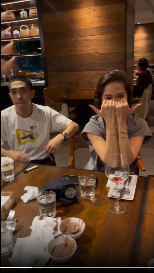 และใน TikTok ของวงไทยเทเนี่ยมก็ได้โพสต์คลิปคนที่มาร่วมดินเนอร์ในครั้งนี้ โดยในคลิปนี้นานาแพนกล้องแบบเร็วๆ ไปที่ โต้ง-พลอย ซึ่งนั่งอยู่ใกล้กัน และมีเสียงแซวว่า “แพนมาคู่นี้หน่อยๆ” งานนี้ทั้งคู่เลยรีบทำท่าสัญลักษณ์วงไทยเทเนี่ยมมาปิดหน้าพร้อมกัน