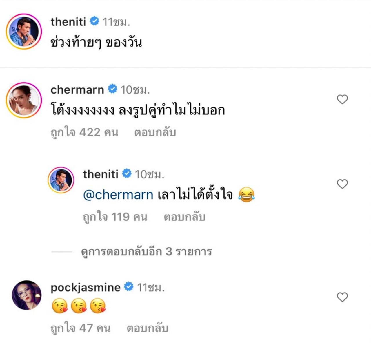 และด้วยมุมภาพทำให้ ป๊อก ปิยธิดา มีใบหน้าคล้ายกับ พลอย เฌอมาลย์ เลยทำให้ พลอย ได้เข้ามาคอมเมนต์แซวภาพดังกล่าวว่า "โต้งงงงงงงง ลงรูปคู่ทำไมไม่บอก" และ ป๋อมแป๋ม ก็ได้ตอบกลับว่า "เลาไม่ได้ตั้งใจ"