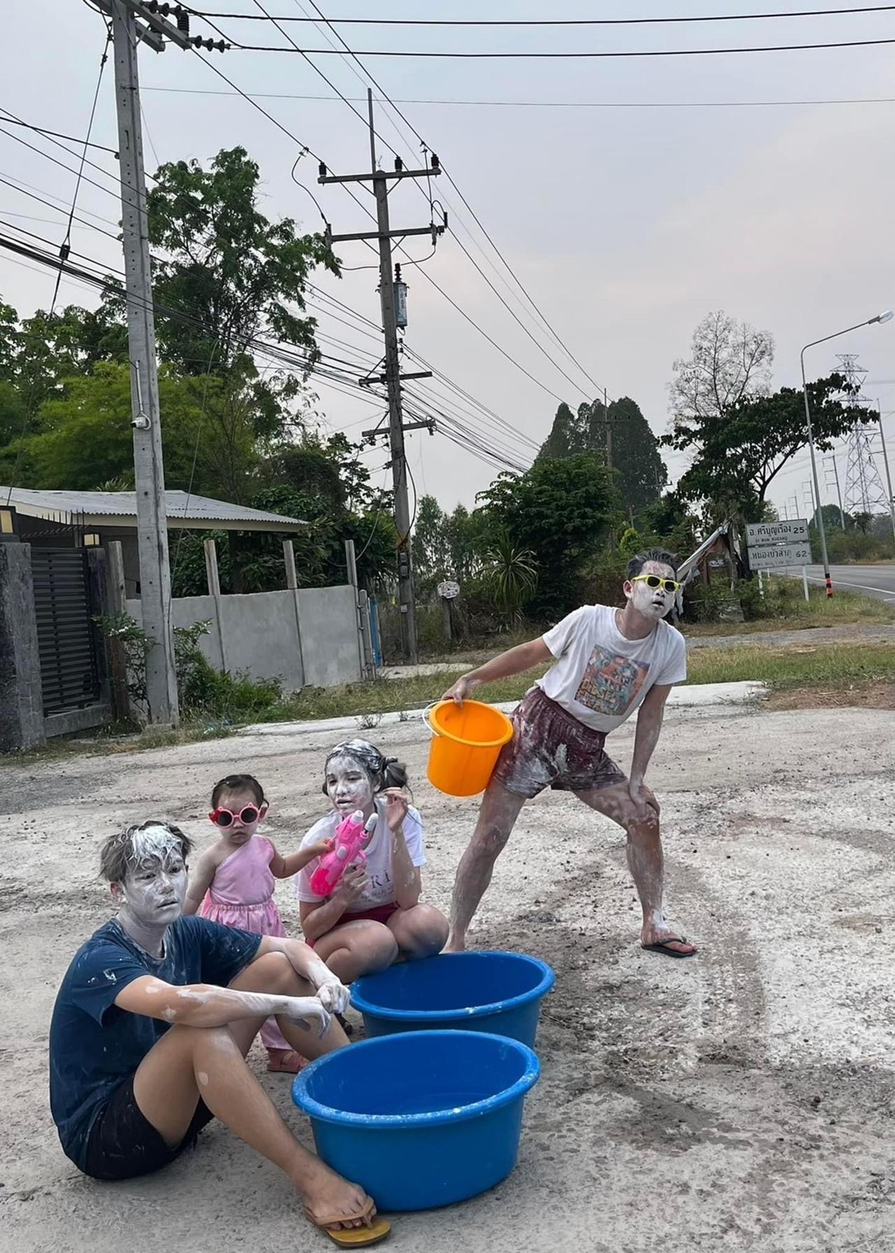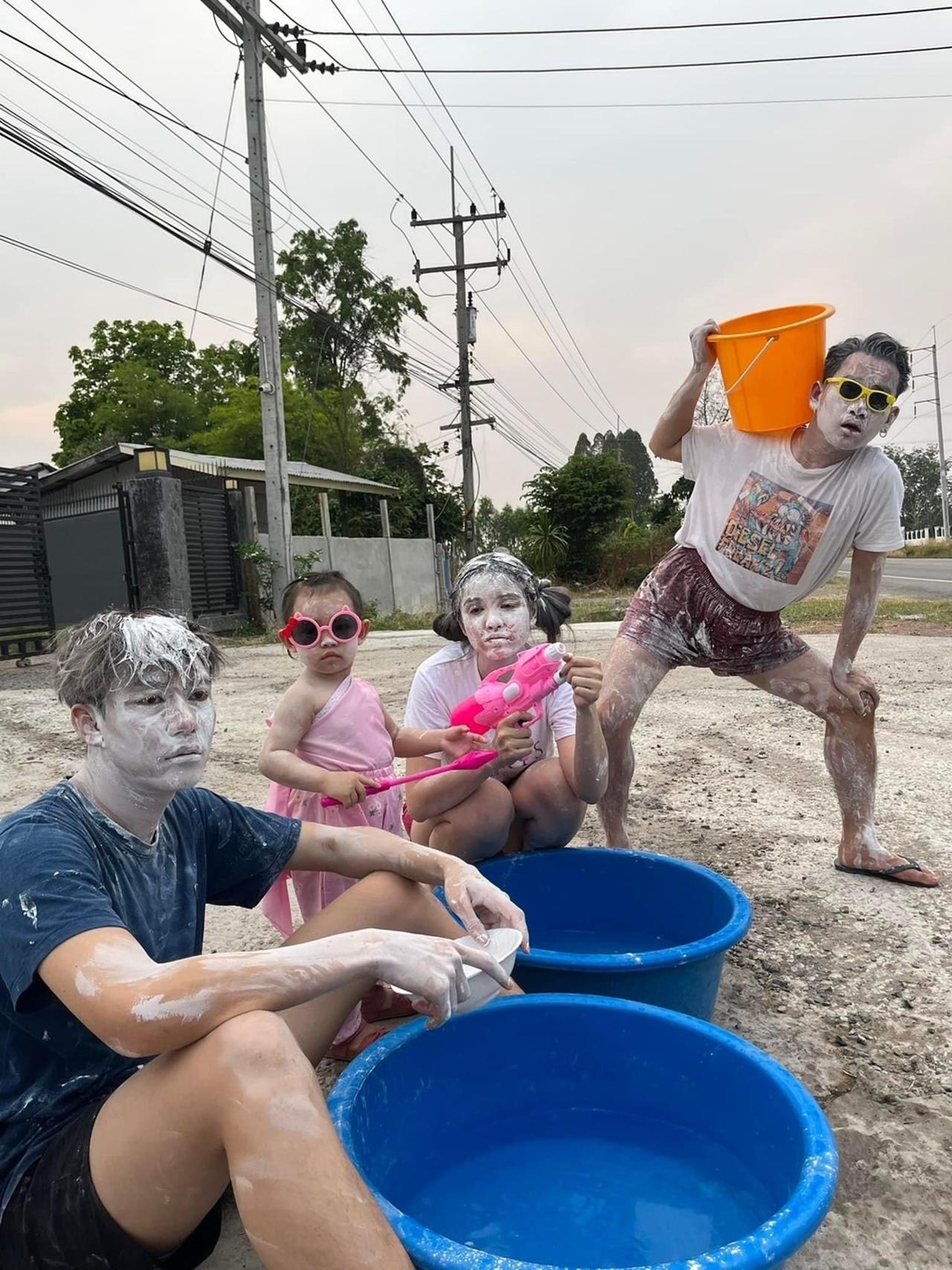 โดยทางครอบครัวของ เต้ย อภิวัฒน์ บุญเอนก นักร้องขวัญใจลูกทุ่งอินดี้ พร้อมด้วย ขนม ศศิกานต์ ภรรยา ได้พาลูกสาว น้องตั้งใจ มาตั้งด่านเตรียมสาดน้ำสงกรานต์ ซึ่งปีนี้เป็นปีแรกที่ น้องตั้งใจ จะได้เล่นสงกรานต์ ซึ่งครอบครัวนี้ได้จัดเต็มก่อนใครเลยทีเดียว พากันปะแป้งขาวทั้งตัว