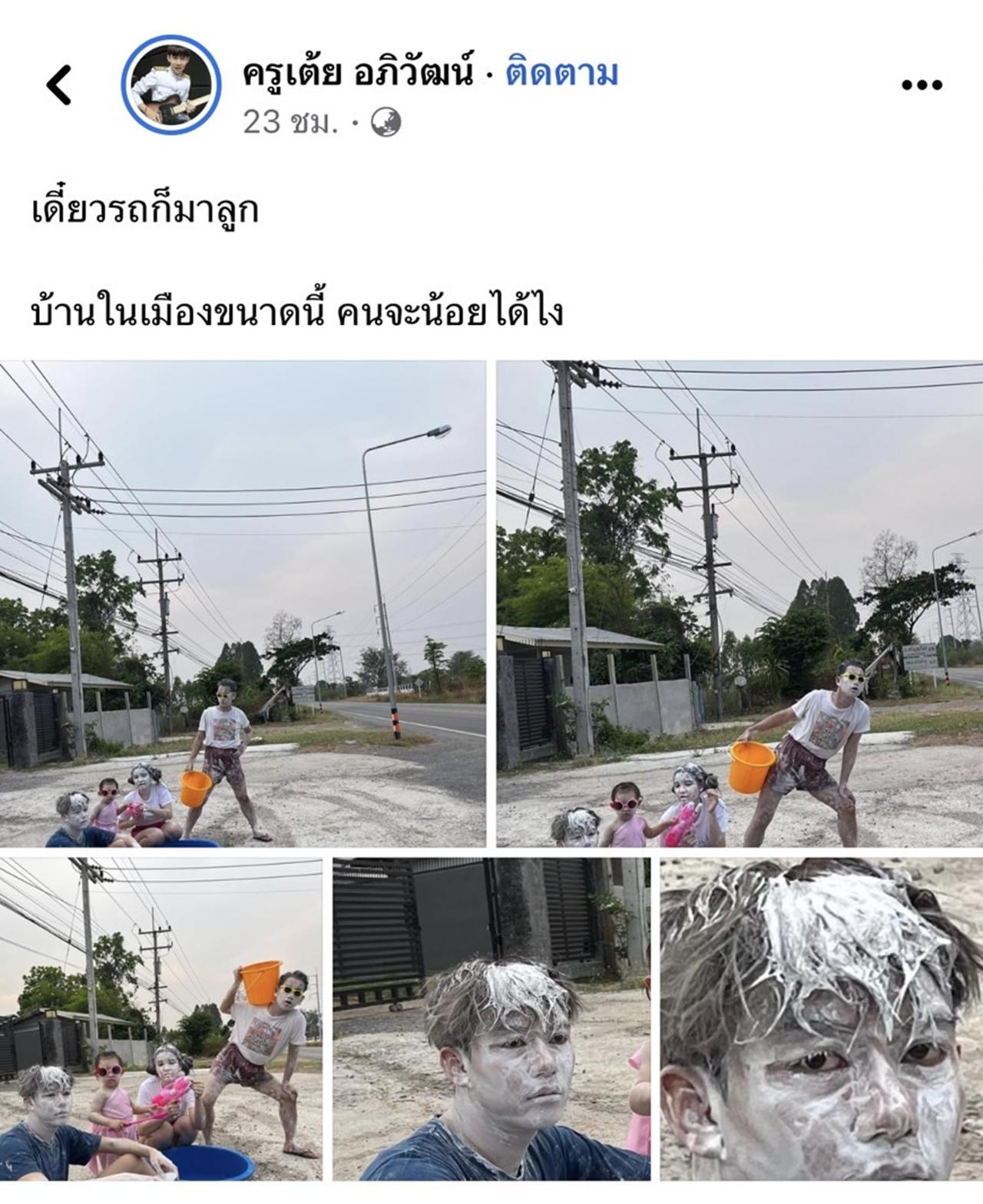 ซึ่ง ครูเต้ย มั่นใจมาก เพราะบ้านอยู่ในเมือง ต้องได้สาดแน่ๆ แต่หลายคนเห็นรูปบรรยากาศถนนหน้าบ้าน และสีหน้าแล้วถึงกับท้อเลย และหมดหวัง ไม่รู้ว่าปีนี้จะได้สาดใครหรือไม่ เพราะถนนหน้าบ้านนั้นเงียบกริบ