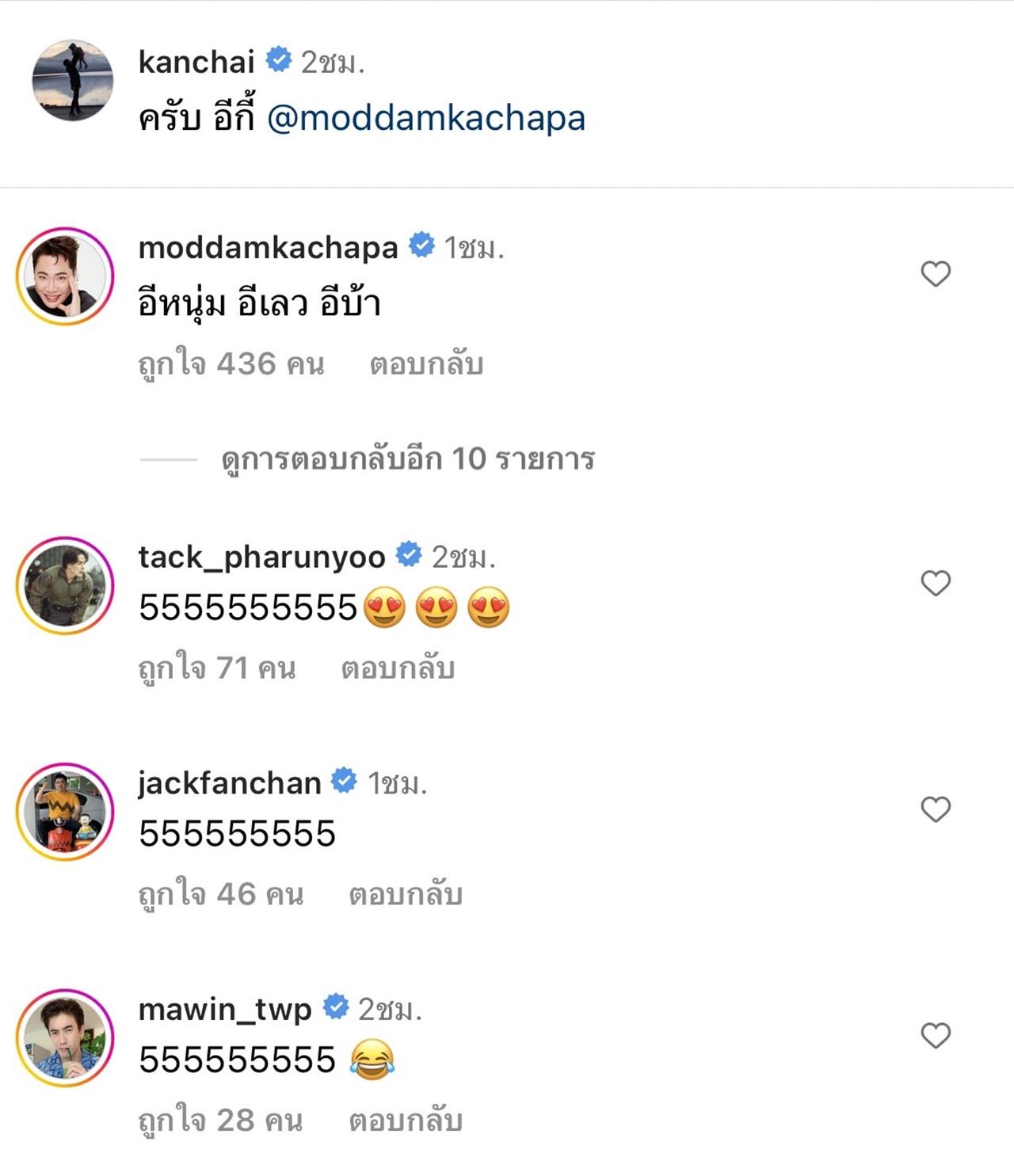 หลายคนที่ติดตามต่างเข้ามาคอมเมนต์ขำกันยกใหญ่ พร้อมกับแซวคู่นี้กันจำนวนมาก อีกทั้งยังเชียร์ให้ มดดำ โพสต์ภาพของ หนุ่ม กรรชัย ในยุคนั้นเพื่อเอาคืน.