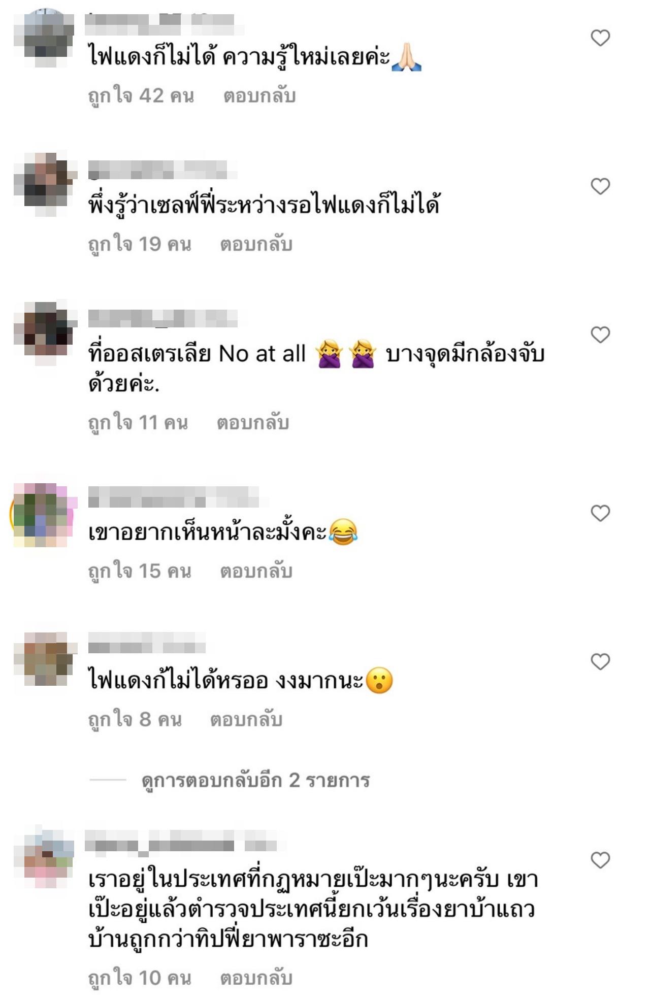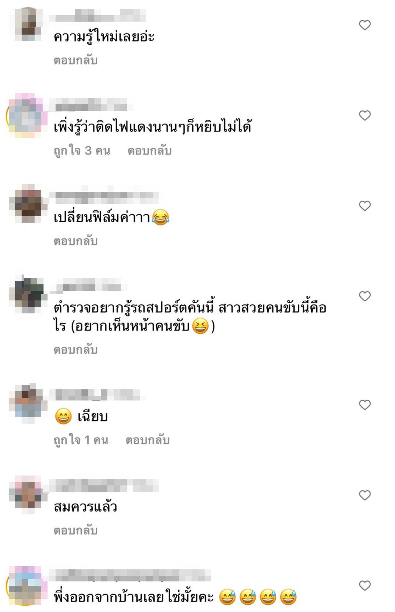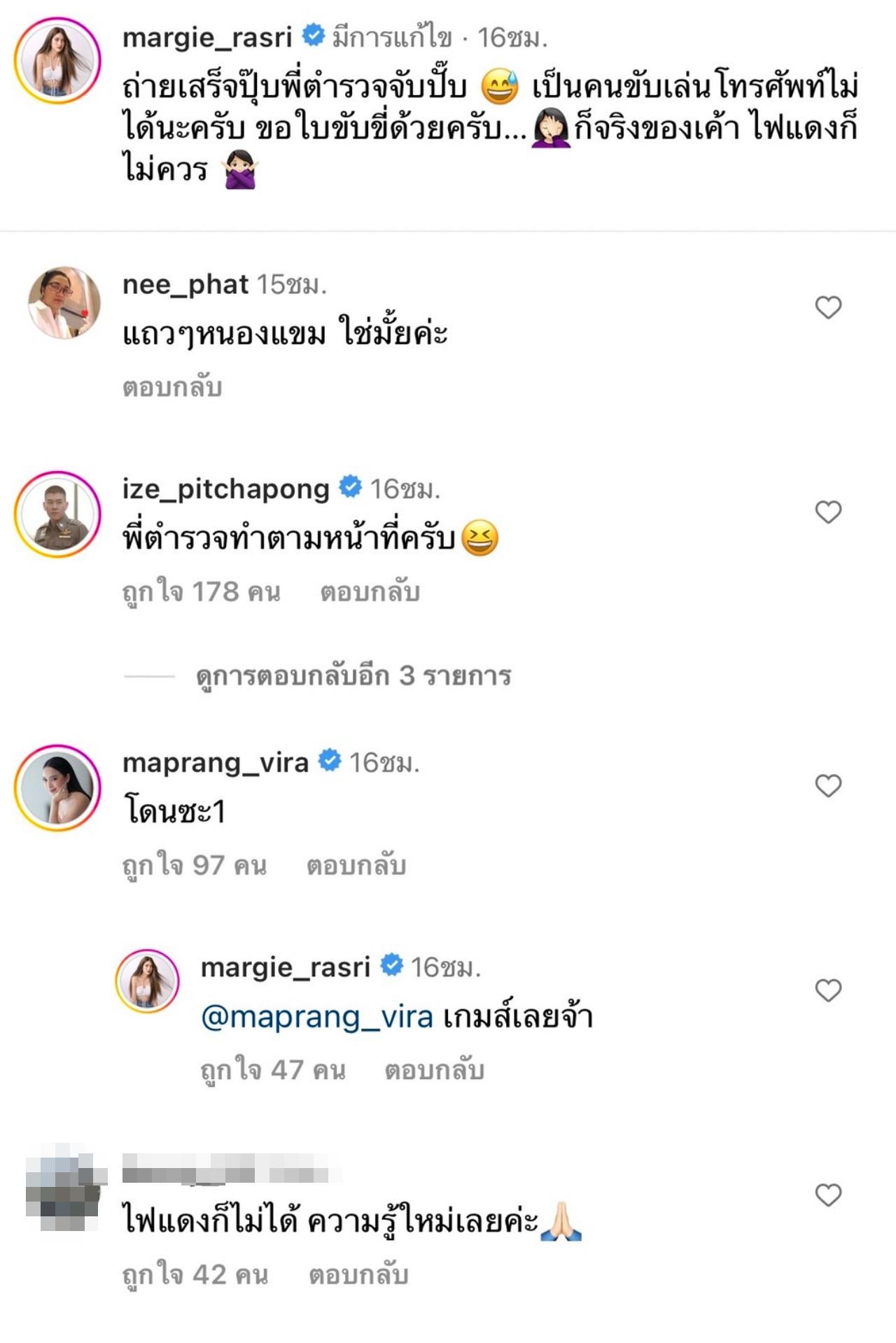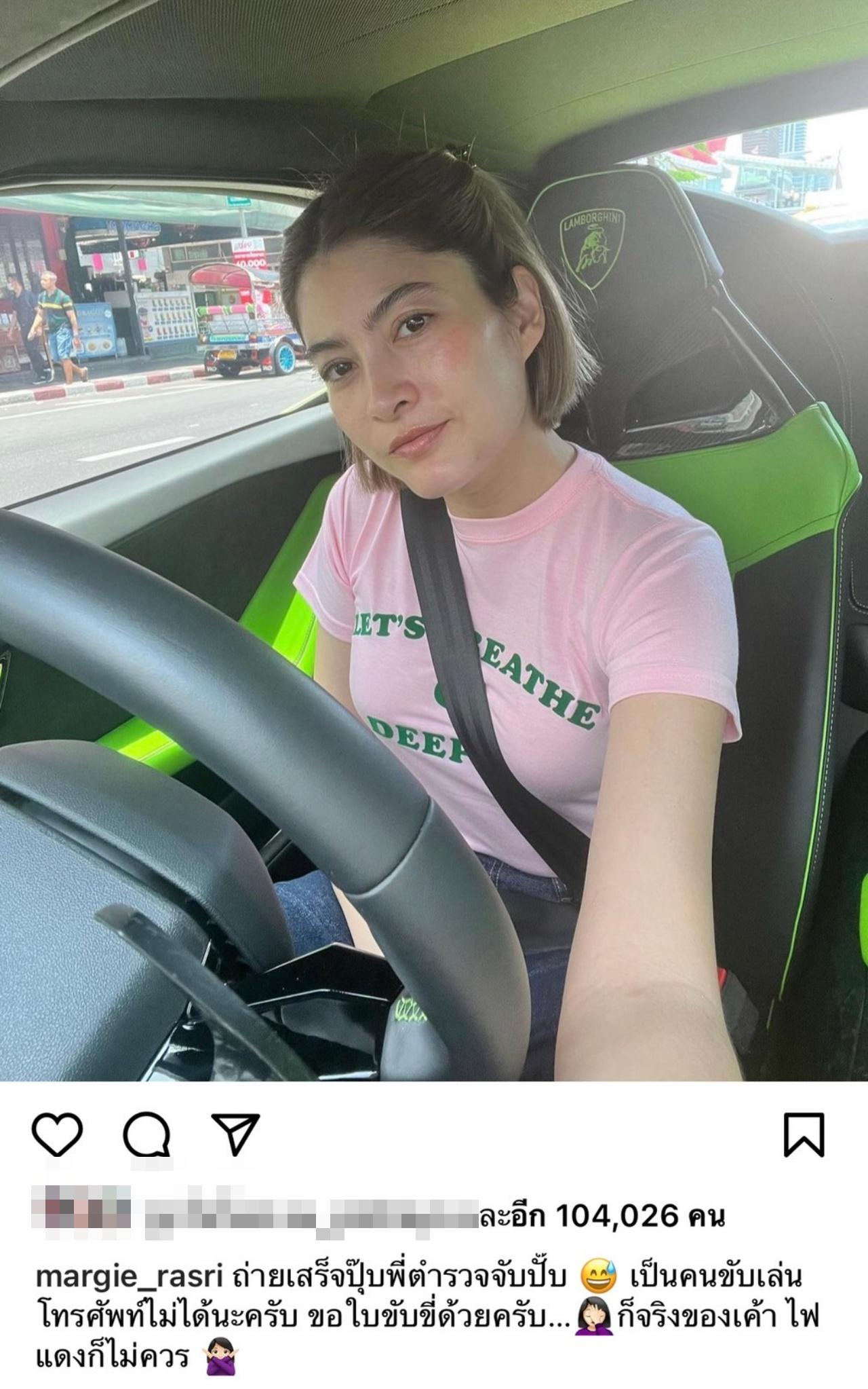 "ถ่ายเสร็จปุ๊บพี่ตำรวจจับปั๊บ เป็นคนขับเล่นโทรศัพท์ไม่ได้นะครับ ขอใบขับขี่ด้วยครับ…ก็จริงของเค้า ไฟแดงก็ไม่ควร" หลังจากที่ มาร์กี้ โพสต์ข้อความดังกล่าวไป ก็มีชาวเน็ตแห่คอมเมนต์บอกว่าเป็นความรู้ใหม่มากมายว่า "ไฟแดงก็ไม่ได้ ความรู้ใหม่เลยค่ะ, พึ่งรู้ว่าเซลฟ์ฟี่ระหว่างรอไฟแดงก็ไม่ได้, เพิ่งรู้ว่าติดไฟแดงนานๆก็หยิบไม่ได้, ไฟแดงก้ไม่ได้หรออ งงมากนะ, ความรู้ใหม่เลยอ่ะ, แลมโบก็ไม่รอดนะคะ, ไฟแดงก็ไม่ได้จริงๆหรอ เพิ่งรู้เลยย".