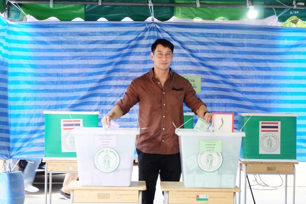 เห็นความคึกคักของปีนี้ก็ดีใจอยากให้ทุกคนออกมาเยอะๆ เพราะอย่างที่บอกครับ เสียงของประชาชนคือเสียงที่สำคัญที่สุด วันนี้ถ้าออกมาเยอะๆ มันเป็นการที่สะท้อนว่าประชาชนต้องการอะไรจริงๆ หนึ่งเสียงก็เปลี่ยนแปลงได้ ก็ปิดหีบเลือกตั้ง 5 โมเงย็น ขอเชิญชวนให้ออกมากันเยอะๆ นะครับ วันนี้จะเป็นวันเดียวที่เราจะมีสิทธิ มีเสียงเลือกผู้แทนของเรา ออกมาเพื่อสะท้อนเสียงของประชาชน ยิ่งออกมาเยอะๆ ยิ่งเห็นภาพว่าประชาชนต้องการอะไร ออกมากันเยอะๆ นะครับ”.