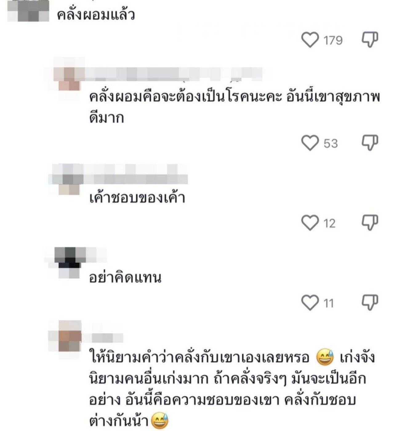 แต่ก็มีชาวเน็ตบางส่วนเข้ามาคอมเมนต์ และตอบโต้แทน ใหม่ ดาวิกา เช่นกันว่า “ผอมก็คือผอมแต่เป็นผอมที่แข็งแรง, คลั่งผอมคือจะต้องเป็นโรคนะคะ อันนี้เขาสุขภาพดีมาก, เค้าชอบของเค้า, อย่าทิดแทน, ให้นิยามคำว่าคลั่งกับเขาเองเลยหรอ เก่งจัง นิยามคนอื่นเก่งมาก ถ้าคลั่งจริงๆ มันจะเป็นอีกอย่าง อันนี้คือความชอบของเขา คลั่งกับชอบต่างกันน้า”