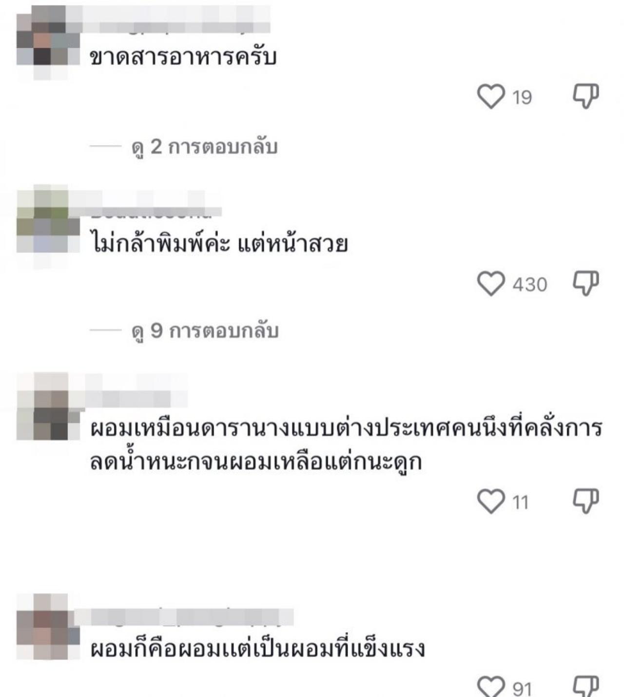 แต่หลังจากที่ชาวเน็ตได้เห็นภาพของนางเอกสาวก็ได้เข้ามาคอมเมนต์วิจารณ์รูปร่างของใหม่ว่า “ขาดสารอาการครับ, ไม่กล้าพิมพ์ค่ะ แต่หน้าสวย, ผอมเหมือนดารานางแบบต่างประเทศคนนึงที่คล่งการลำน้ำหนักจนผอมเหลือแต่กระดูก, คลั่งผอมแล้ว”