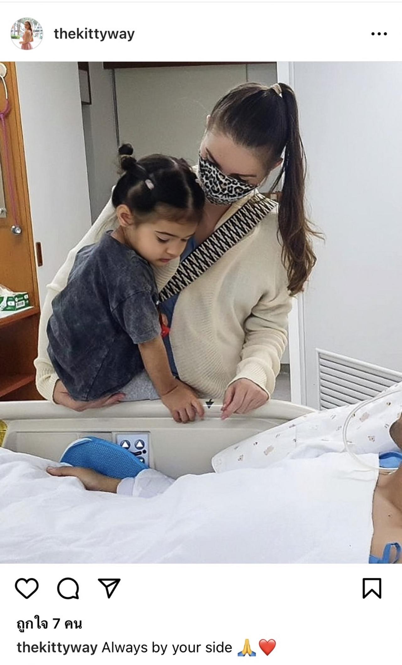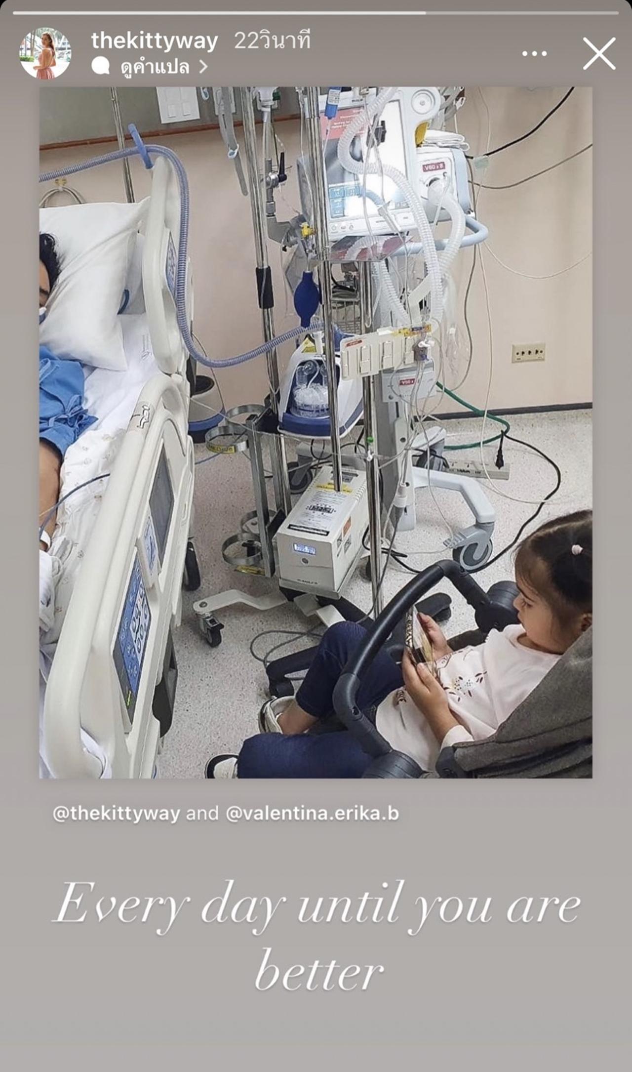 และยังได้โพสต์ไอจีสตอรี่เป็นภาพที่ลูกสาวนั่งข้างๆ คุณพ่อ และเขียนว่า "Every day until you are better" (จะอยู่เฝ้าทุกวันจนกว่าจะดีขึ้น) กับ "We are staying by your side" (เราจะอยู่เคียงข้างคุณ)