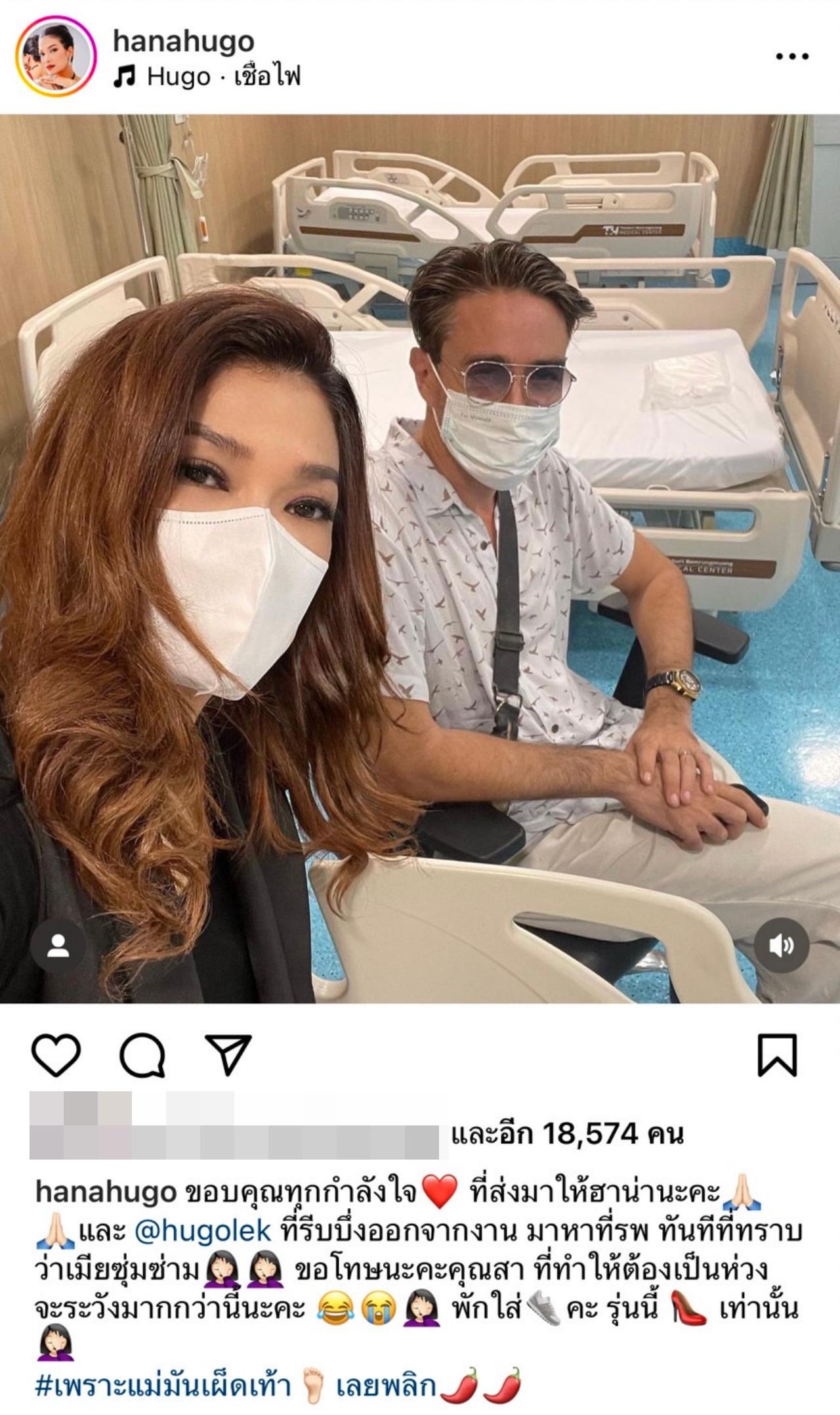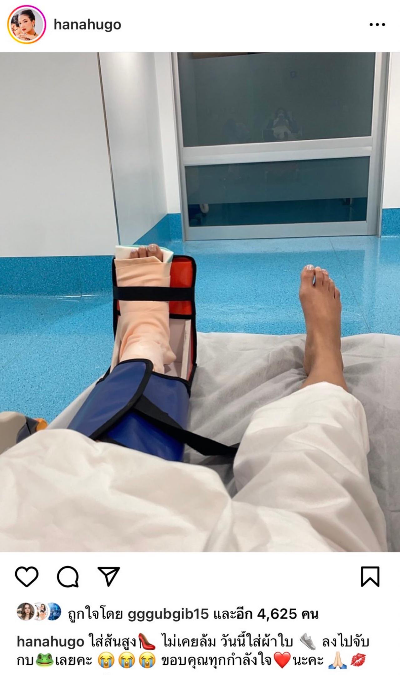 "ขอบคุณทุกกำลังใจ ที่ส่งมาให้ฮาน่านะคะ และ @hugolek ที่รีบบึ่งออกจากงาน มาหาที่ รพ.ทันทีที่ทราบว่าเมียซุ่มซ่าม ขอโทษนะคะคุณสา ที่ทำให้ต้องเป็นห่วง จะระวังมากกว่านี้นะคะ พักใส่ (อีโมจิรองเท้าผ้าใบ) ค่ะ รุ่นนี้ (อีโมจิส้นสูง) เท่านั้น #เพราะแม่มันเผ็ดเท้า เลยพลิก"