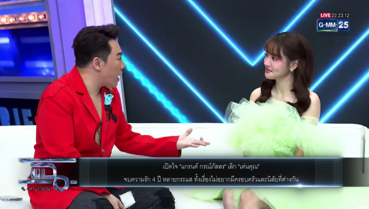 ถามว่าเขามาง้อไหม แกรนด์บอกว่า เดือนแรกก็ไม่แน่ใจ ก็แย่กันทั้งคู่สุดๆ แต่เราก็ตัดสินใจกันแล้ว เราตัดสินใจตั้งแต่วันที่เด่นบอกเลย เขาตั้งคำถามแล้วบอกว่ายังไง