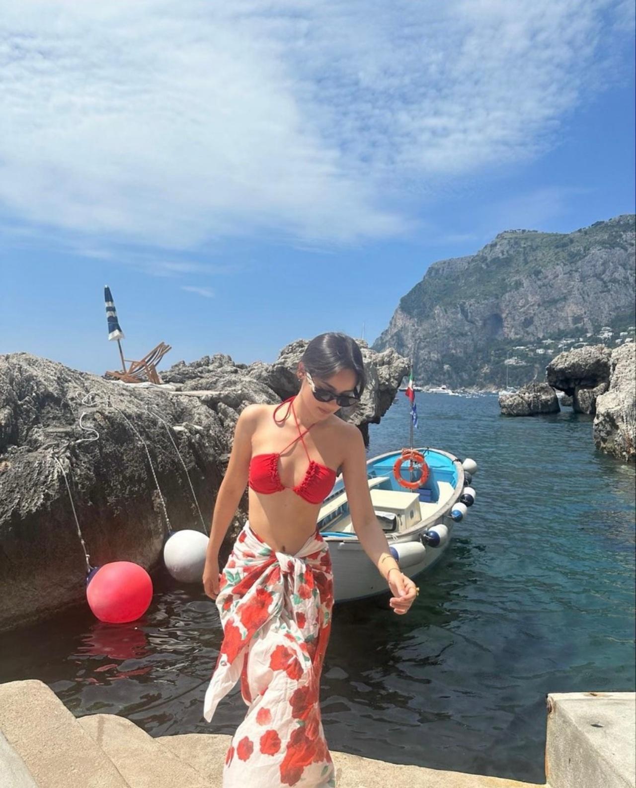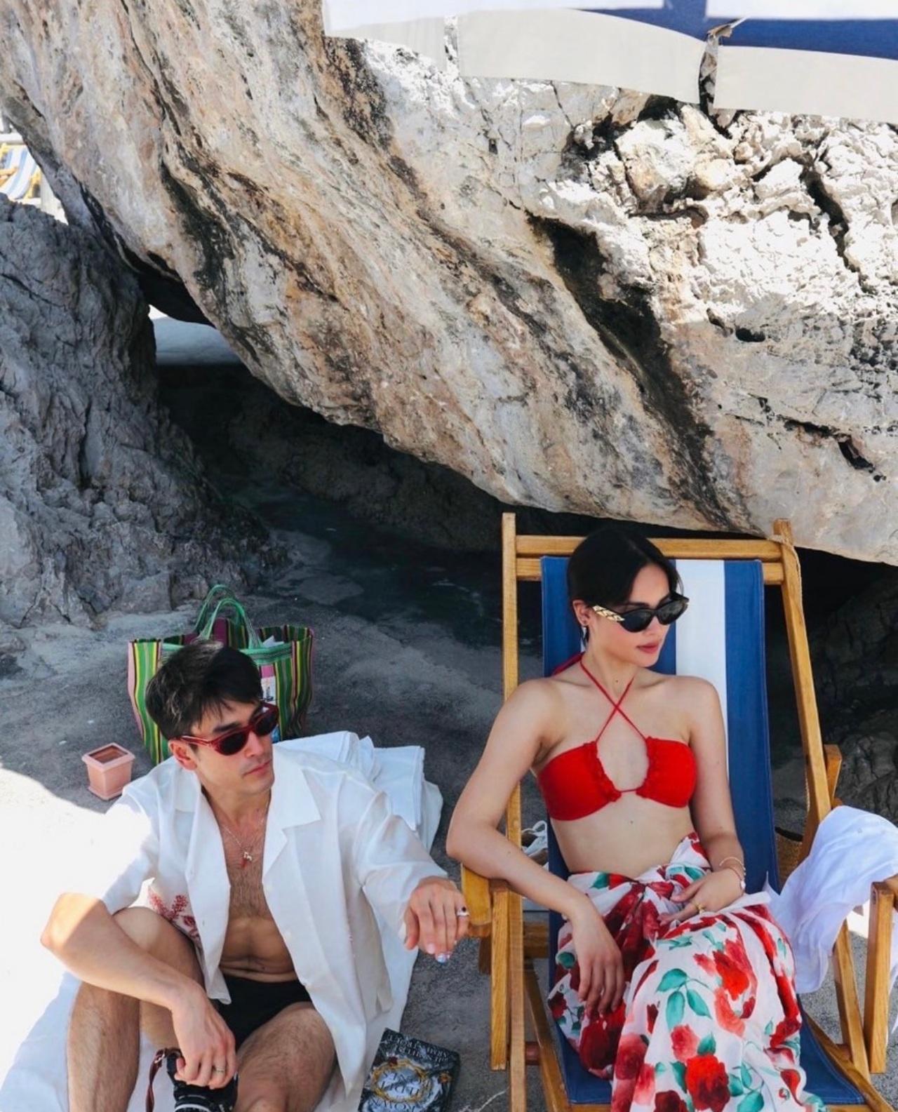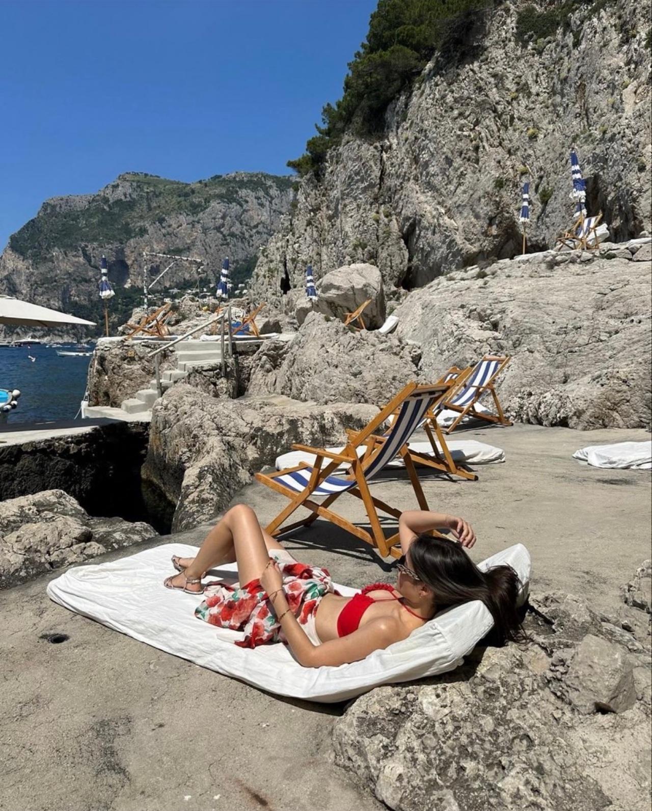 นอกจากจะไปสวีเดนแล้ว ทั้งคู่ยังไปเที่ยวต่อที่ประเทศอิตาลี อย่างล่าสุด ญาญ่า ได้เผยชอตเด็ดจากเกาะกาปรี เกาะสุดชิกสุดโรแมนติกของอิตาลี ด้วยภาพสวมบิกินีสีแดงเพลิง นอนอาบแดด