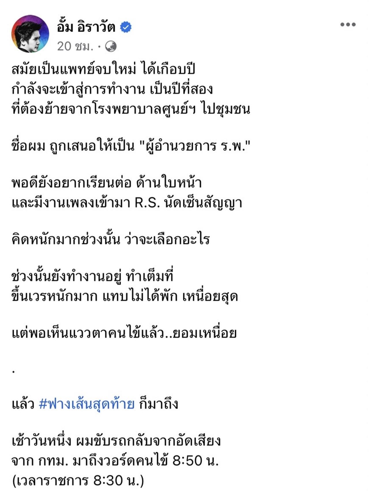 ด้าน หมออั้ม อิราวัต อารีกิจ อดีตนักร้องชื่อดัง ก็ได้โพสต์เล่าประสบการณ์สมัยเป็นแพทย์จบใหม่ แต่กลับเจอรุ่นพี่ที่เห็นแก่ตัว โดยระบุว่า