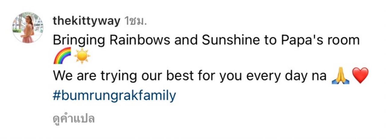 #bumrungrakfamily" (พาสายรุ้งและแสงแดดมาห้องปะป๊า เราพยายามอย่างดีที่สุดเพื่อคุณทุกวันนะคะ)