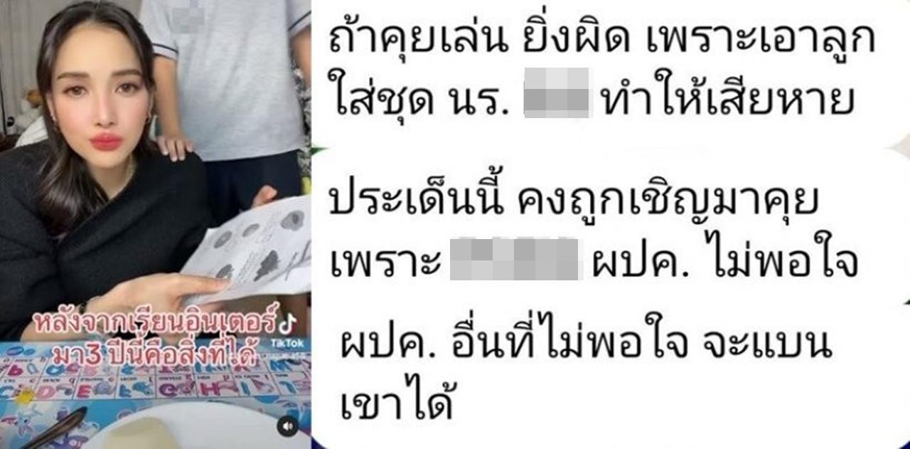 "ถ้าคุยเล่น ยิ่งผิด เพราะเอาลูกใส่ชุดนร…… ทำให้เสียหาย", "ประเด็นนี้ คงถูกเชิญมาคุย เพราะ …… ผู้ปกครองไม่พอใจ", "ผู้ปกครองอื่นที่ไม่พอใจ จะแบนเขาได้" เป็นต้น.