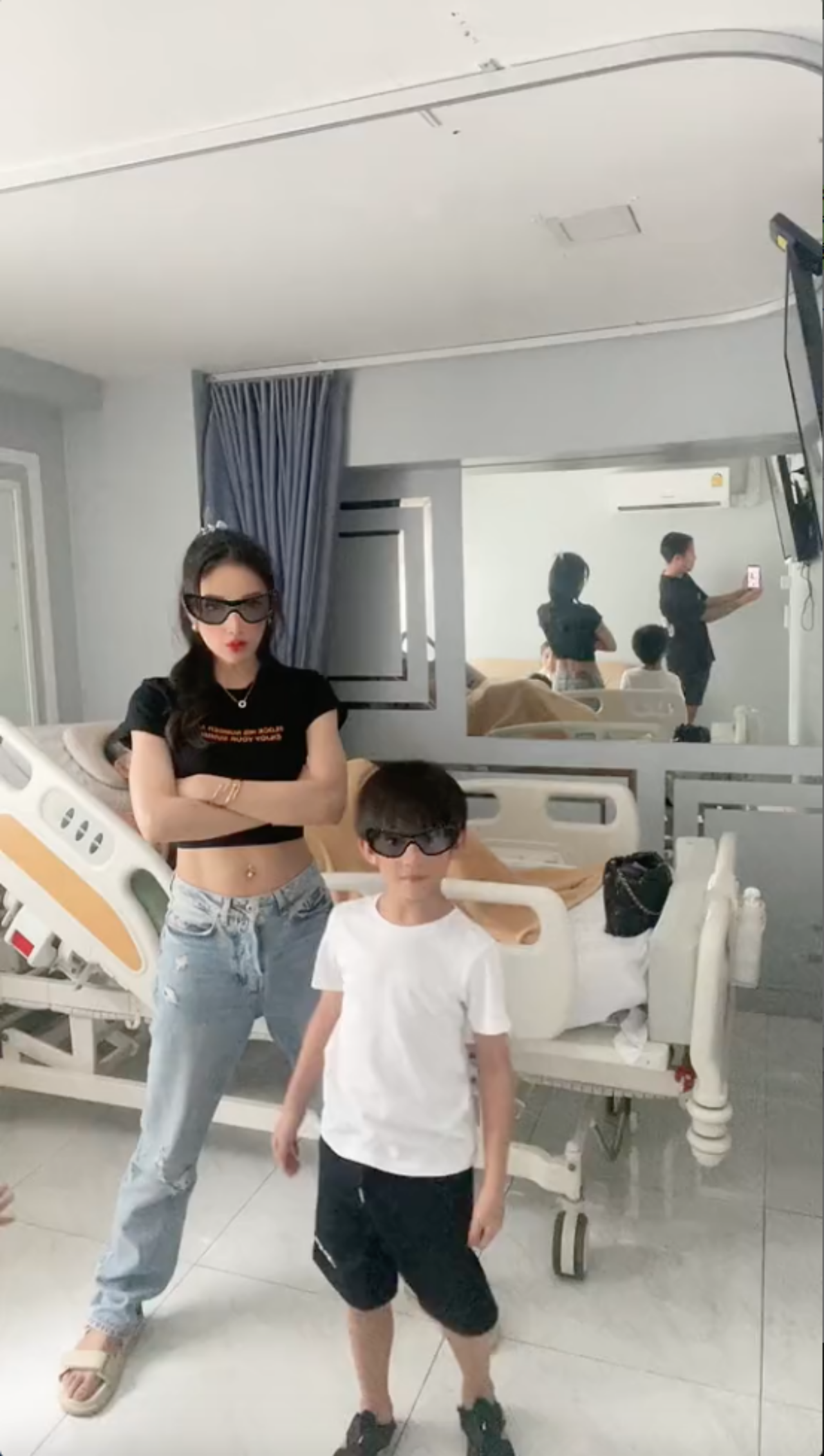 พร้อมกันนี้ชาวเน็ตยังเข้ามาคอมเมนต์แซวรัวๆ อีกว่า “ไม่ได้ดูเอวแม่เลย ดูในกระจก, โฟกัสอะไรก่อนดีคะแม่ เอวแม่หรือคนในกระจกคะ, โฟกัสคนถ่าย, ดูไรดี เรซ แม่ คนในกระจก, ไม่รู้จะโฟกัสอันไหนดี, โฟกัสผิดคน”