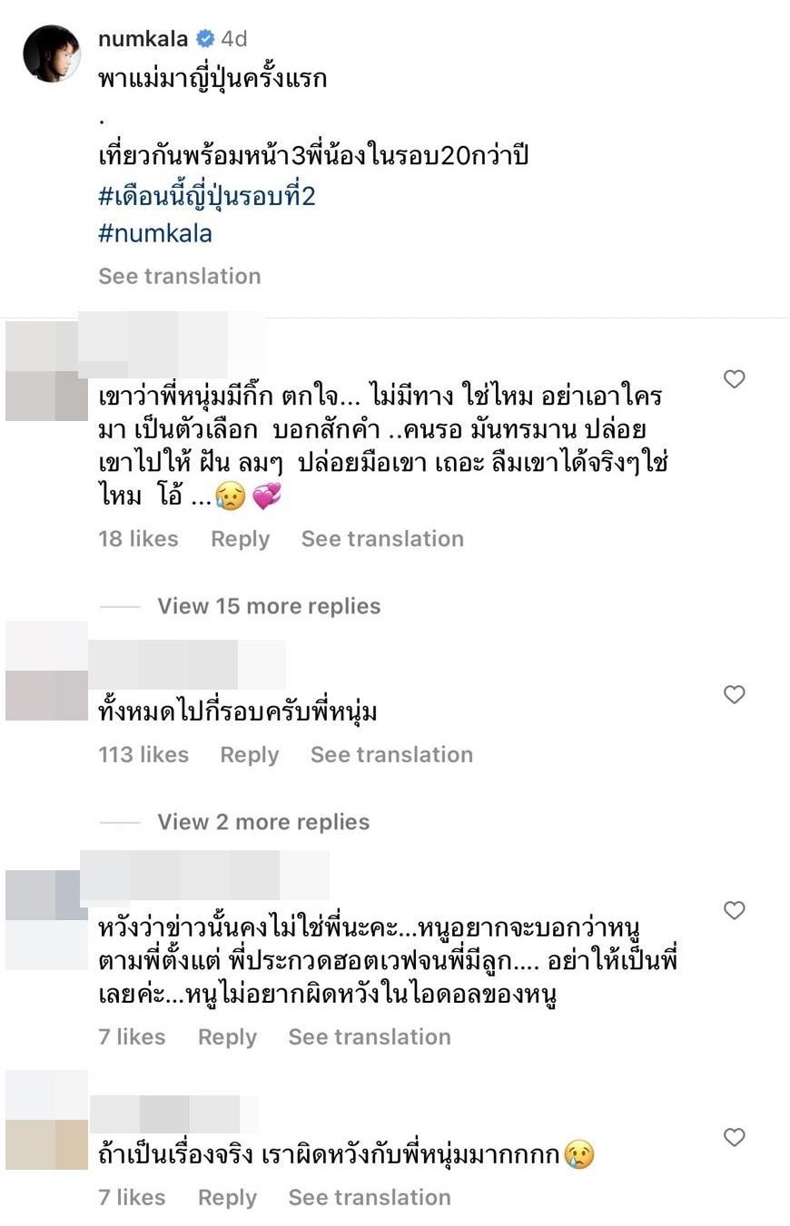 ทำเอาชาวเน็ตหลายคนแห่คอมเมนต์ใต้ภาพให้นักร้องดังออกมาชี้แจง อาทิ ทั้งหมดไปกี่รอบครับพี่หนุ่ม, หวังว่าข่าวนั้นคงไม่ใช่พี่นะคะ…หนูอยากจะบอกว่าหนูตามพี่ตั้งแต่ พี่ประกวดฮอตเวฟจนพี่มีลูก…. อย่าให้เป็นพี่เลยค่ะ…หนูไม่อยากผิดหวังในไอดอลของหนู, ไม่น่าเชื่อนะถ้าเป็นจริงผิดหวัง, ถ้าเป็นเรื่องจริง เราผิดหวังกับพี่หนุ่มมากกกก, เขาว่าพี่หนุ่มมีกิ๊ก ตกใจ... ไม่มีทาง ใช่ไหม อย่าเอาใครมา เป็นตัวเลือก บอกสักคำ ..คนรอ มันทรมาน ปล่อย เขาไปให้ ฝัน ลมๆ ปล่อยมือเขา เถอะ ลืมเขาได้จริงๆใช่ไหม โอ้ ... ฯลฯ