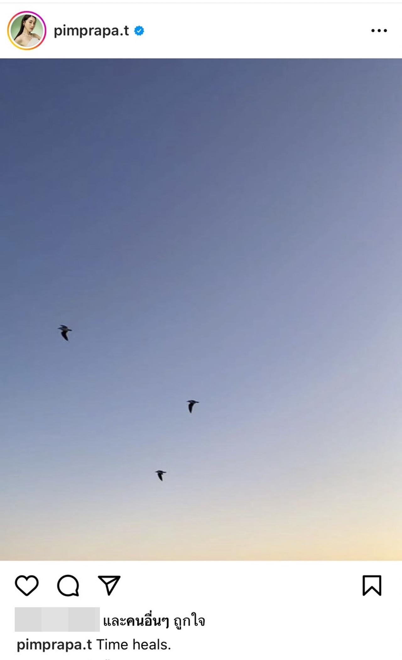 ทำเอาแฟนๆ แห่เป็นห่วงอย่างมาก หลังเห็นภาพทางอินสตาแกรมของนางเอกสาว พิม พิมประภา ที่ได้โพสต์ภาพท้องฟ้าที่มีนก 3 ตัวบินอยู่บนท้องฟ้า พร้อมเขียนแคปชั่นว่า "Time heals."