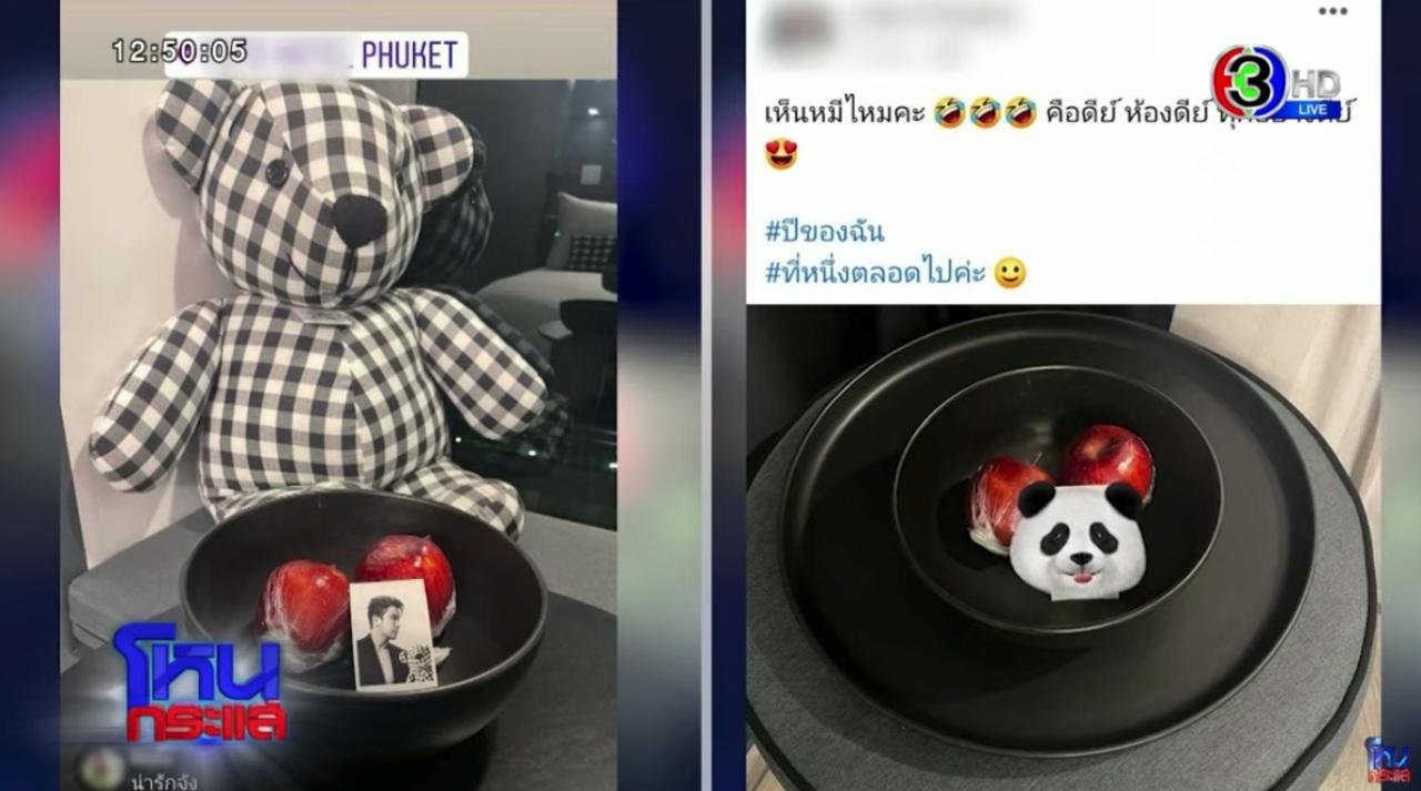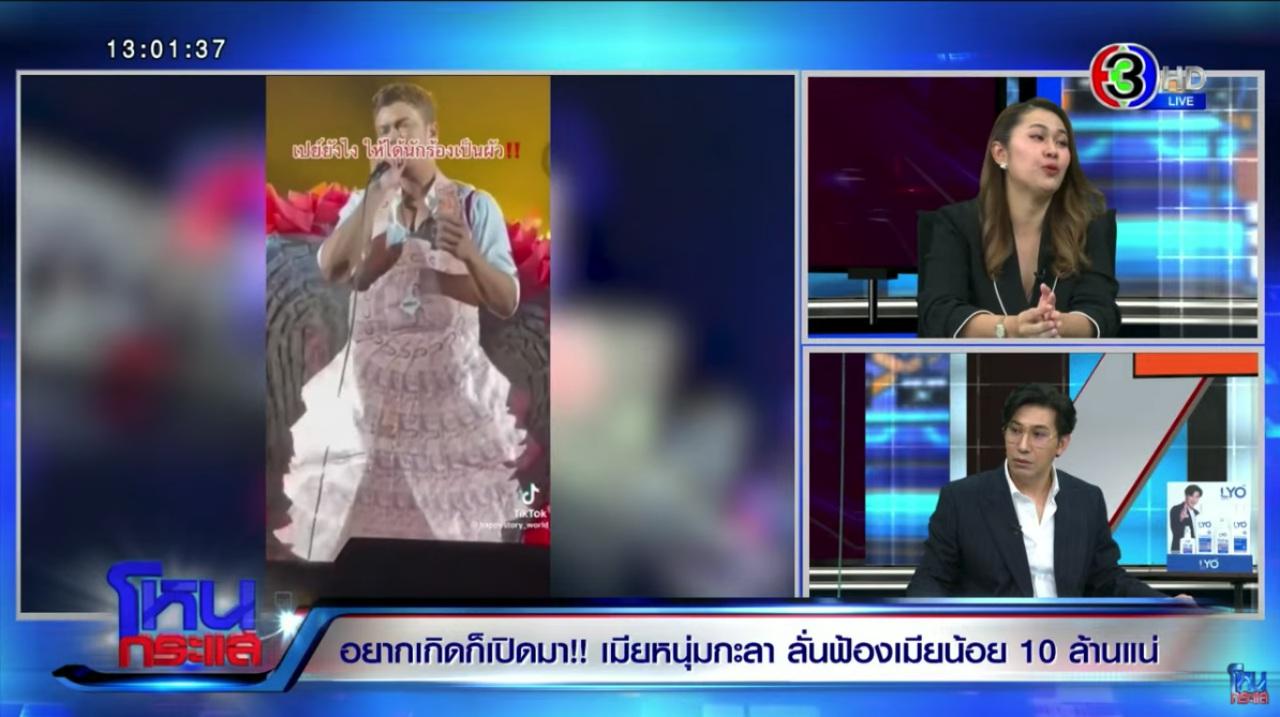 แล้วมีคลิปๆ ในคอนเสิร์ตเมื่อประมาณปีที่แล้ว ที่ผู้หญิงคนนั้นได้มีการเอาพวงมาลัยเงินมามอบให้ ได้ยินว่าเขาเป็นแฟนคลับมาก่อน ซึ่งตอนนั้นเราทราบอยู่แล้วว่าผู้หญิงคนนี้มายุ่งกับสามีเรา แต่ตอนนั้นเอาจริงๆ ที่เห็นโมเมนต์นั้นเรารู้สึกอึ้ง ไม่คิดว่าเขาจะมีซีนอะไรขนาดนี้ อันนี้ไม่ทราบว่าเขาเตี๊ยมกันรึเปล่านะ