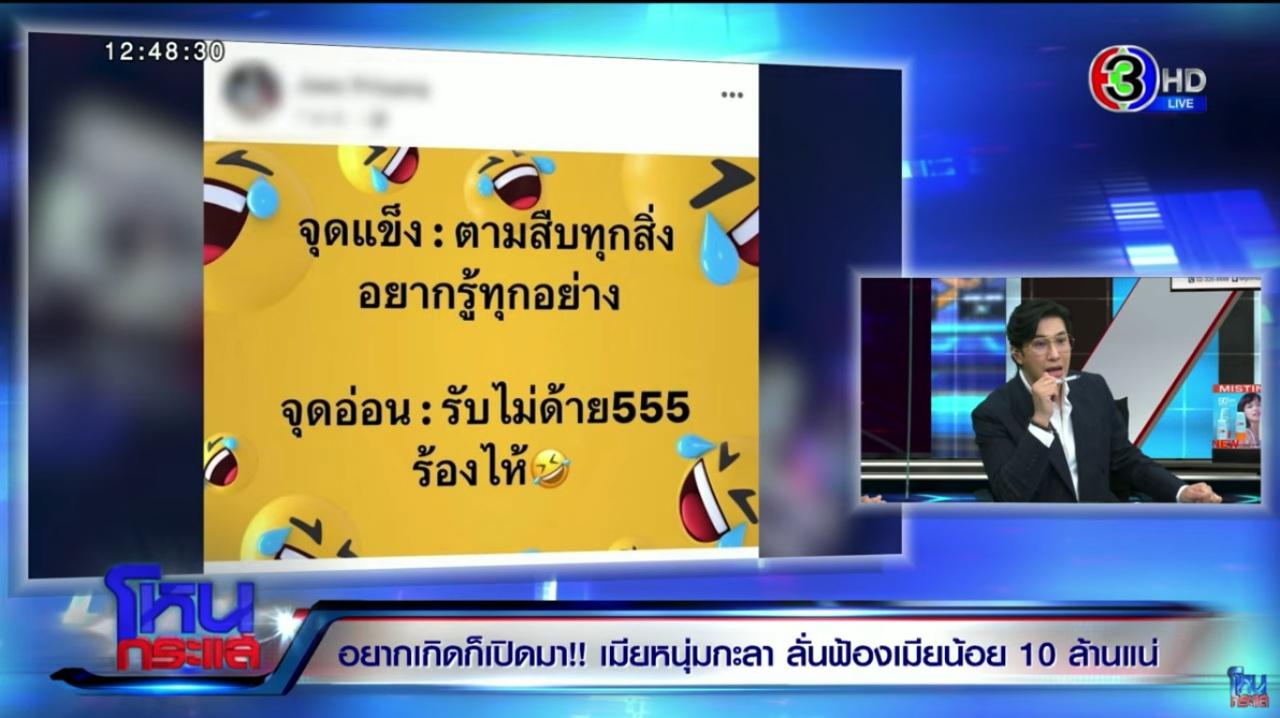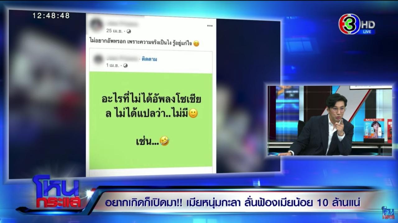 รู้เรื่องนี้มานานแล้ว ช่วงเดือน ธ.ค. 63 ประมาณ 2 ปีครึ่ง ก็ตือมีคนส่งมาบอกก่อนว่าเค้าคบกันคนนี้ แต่เราไม่มีหลักฐาน มีแค่นี้ แต่เราก็เริ่มสืบว่าคนนี้เป็นใคร พอทราบแล้วว่าคนนี้เป็นใครก็ไปเสิร์ชเฟซบุ๊กก็เจอ พอเจอเราก็ย้อนดูในเฟซบุ๊กของผู้หญิงคนนี้ เราก็เห็นหลายอย่าง