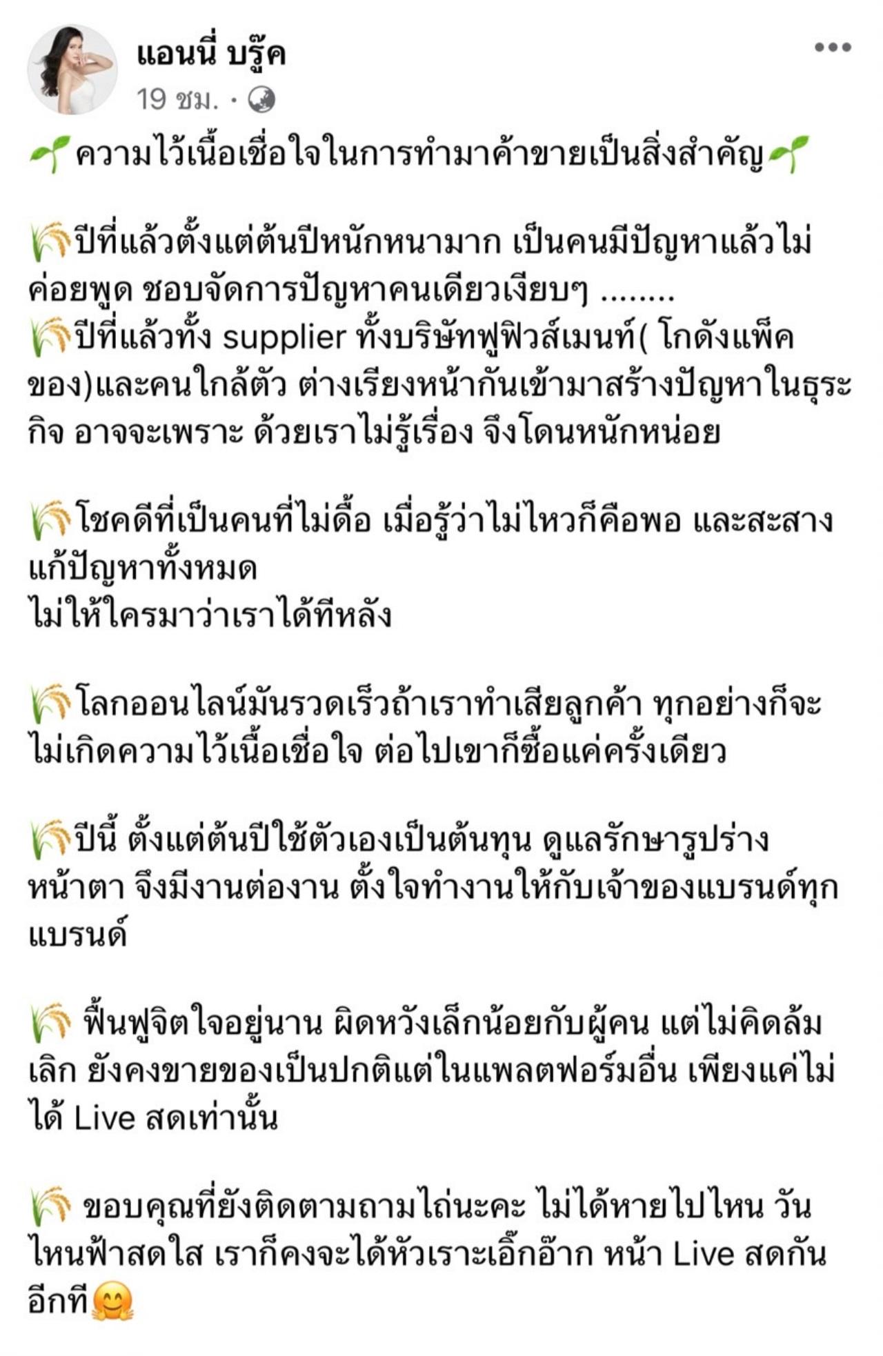 - ฟื้นฟูจิตใจอยู่นาน ผิดหวังเล็กน้อยกับผู้คน แต่ไม่คิดล้มเลิก ยังคงขายของเป็นปกติแต่ในแพลตฟอร์มอื่น เพียงแค่ไม่ได้ Live สดเท่านั้น