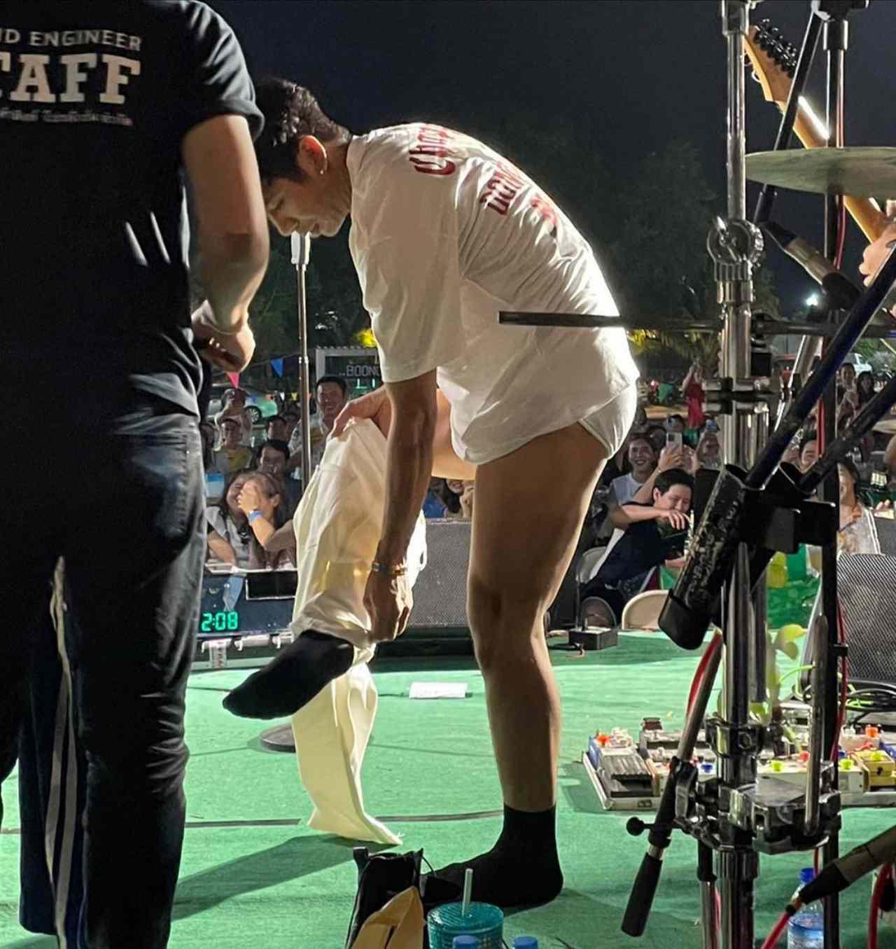 หลังจากที่ก่อนหน้านี้ ก้อง ห้วยไร่ นักร้องชื่อดังได้ถอดกางเกงบนเวทีต่อหน้าคนนับร้อย หลังจากที่มีคนมาประมูลกางเกงที่เจ้าตัวใส่ร้องเพลงบนเวที ถึง 5 หมื่นบาท ซึ่งก็มีทั้งคนขำกับการกล้าถอดกางเกงและแคปชั่นที่เจ้าตัวโพสต์ลงในอินสตาแกรม