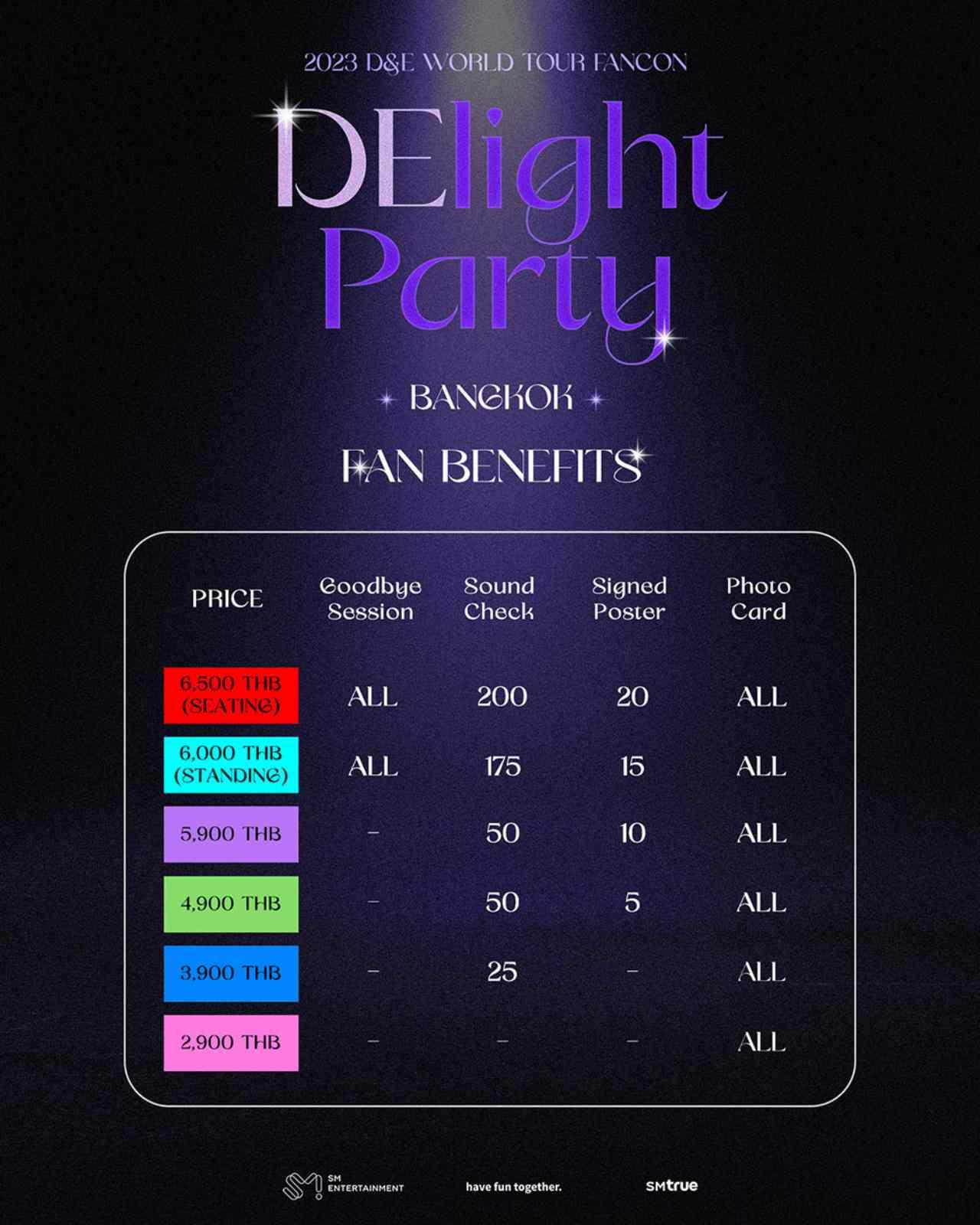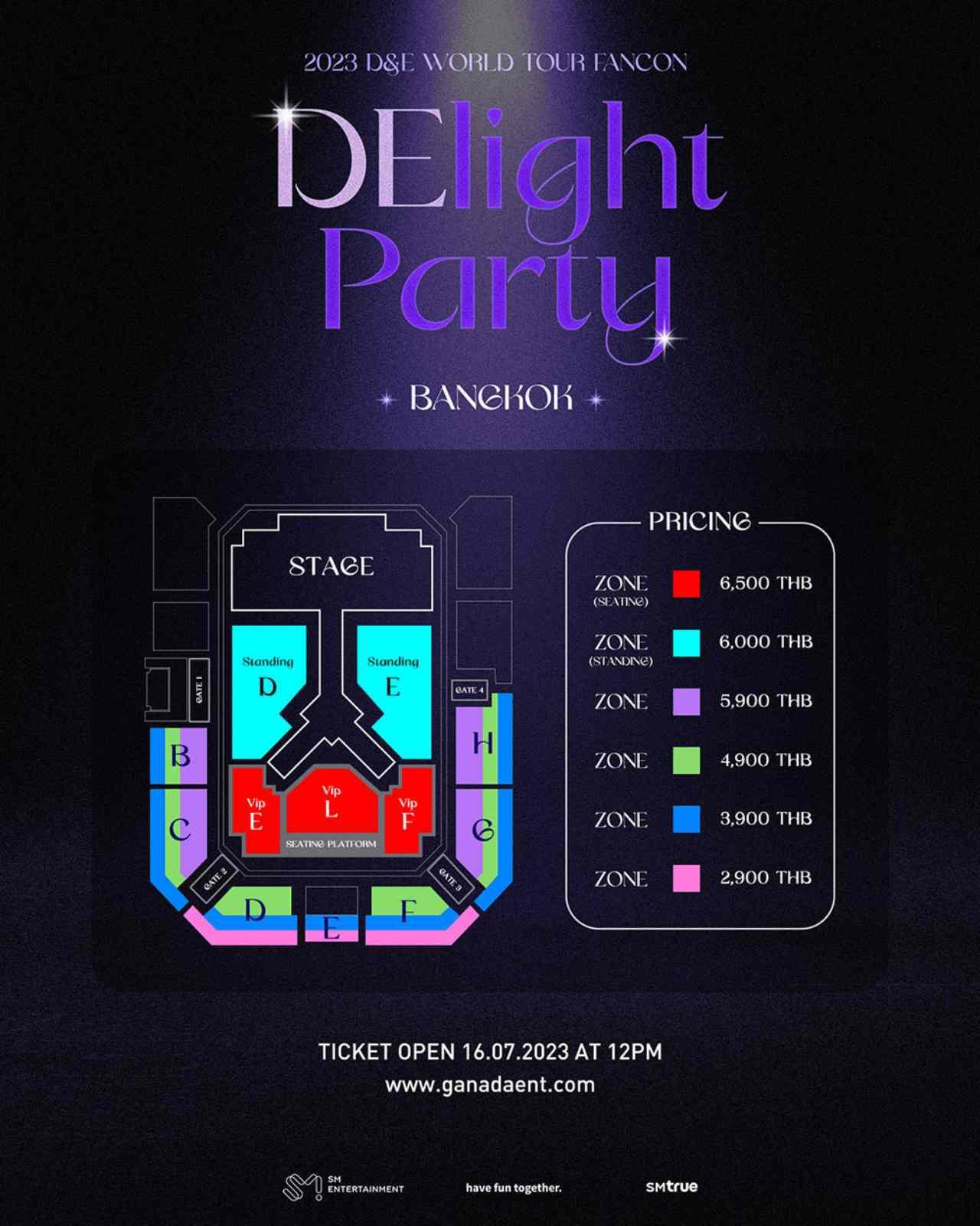 หน้าฝนปีนี้เตรียมตัวให้พร้อม และไปสนุกกับคอนเสิร์ต D&E WORLD TOUR FANCON – [ DElight Party ] IN BANGKOK กันได้ เปิดจำหน่ายบัตรแล้ว ตั้งแต่วันที่ 16 กรกฎาคม 2566 ทางเว็บไซต์ www.ganadaent.com บัตรราคา : 2,900, 3,900, 4,900, 5,900, 6,000 และ 6,500 บาท สอบถามข้อมูลเพิ่มเติม หรือติดตามข่าวสาร และรายละเอียดเพิ่มเติมของคอนเสิร์ตได้ทางเว็บไซต์ www.ganadaent.com