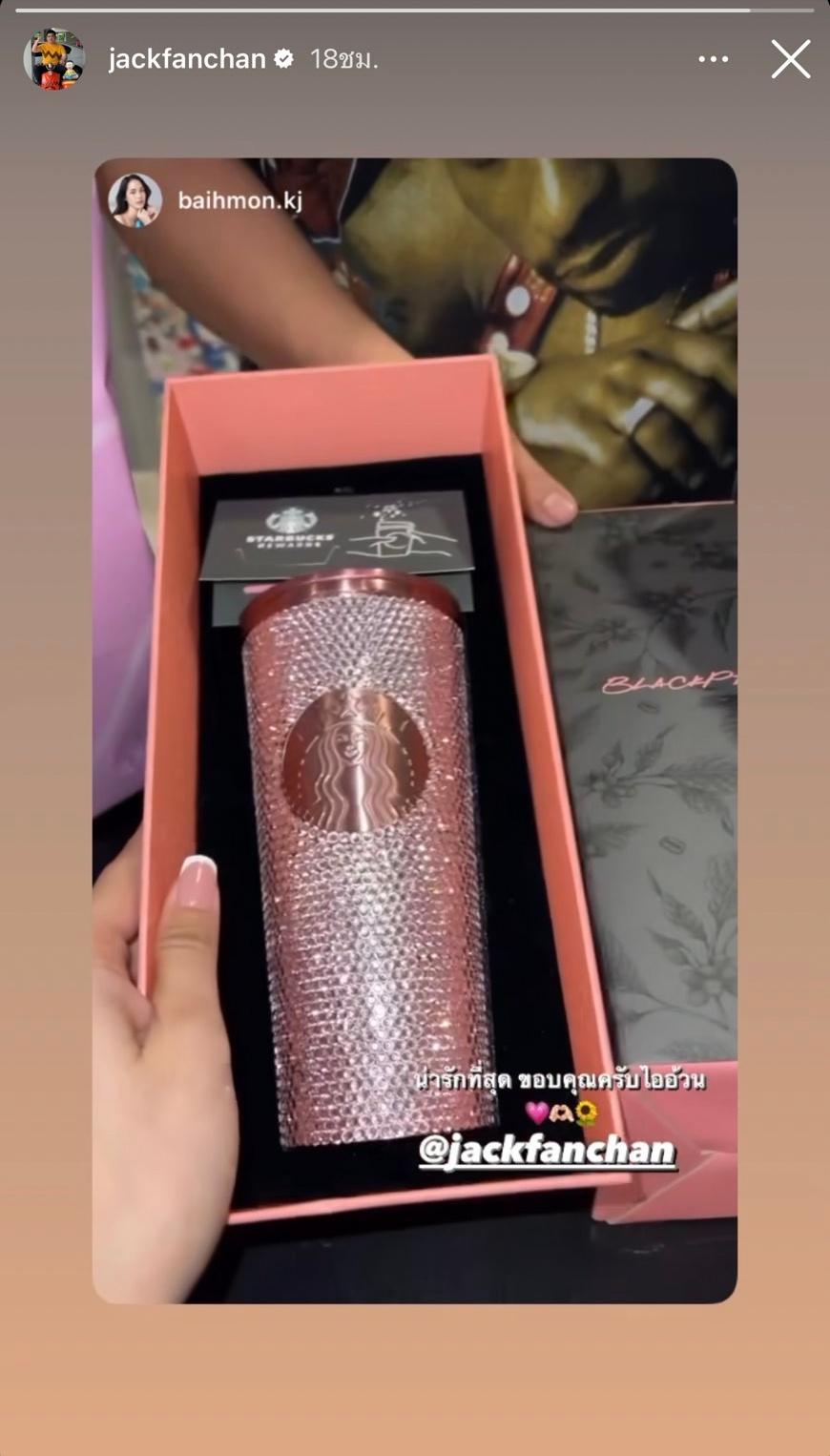 และล่าสุดที่ทำเอาแฟนๆ แห่แซวรัวๆ ก็เป็นภาพที่หนุ่มแจ็คเอาใจใบหม่อนด้วยการซื้อแก้วคอลเลกชันของวง BLACKPINK มาให้ และในอินสตาแกรมของใบหม่อนก็ได้โพสต์คลิปตอนที่แจ็คเอาแก้วมาให้ พร้อมทั้งเขียนข้อความว่า “น่ารักที่สุด ขอบคุณครับไออ้วน @jackfanchan” และแจ็คก็ได้รีโพสต์คลิปดังกล่าว