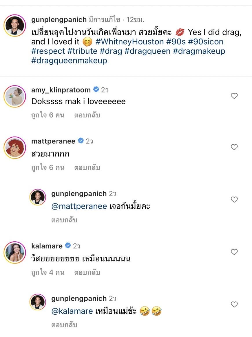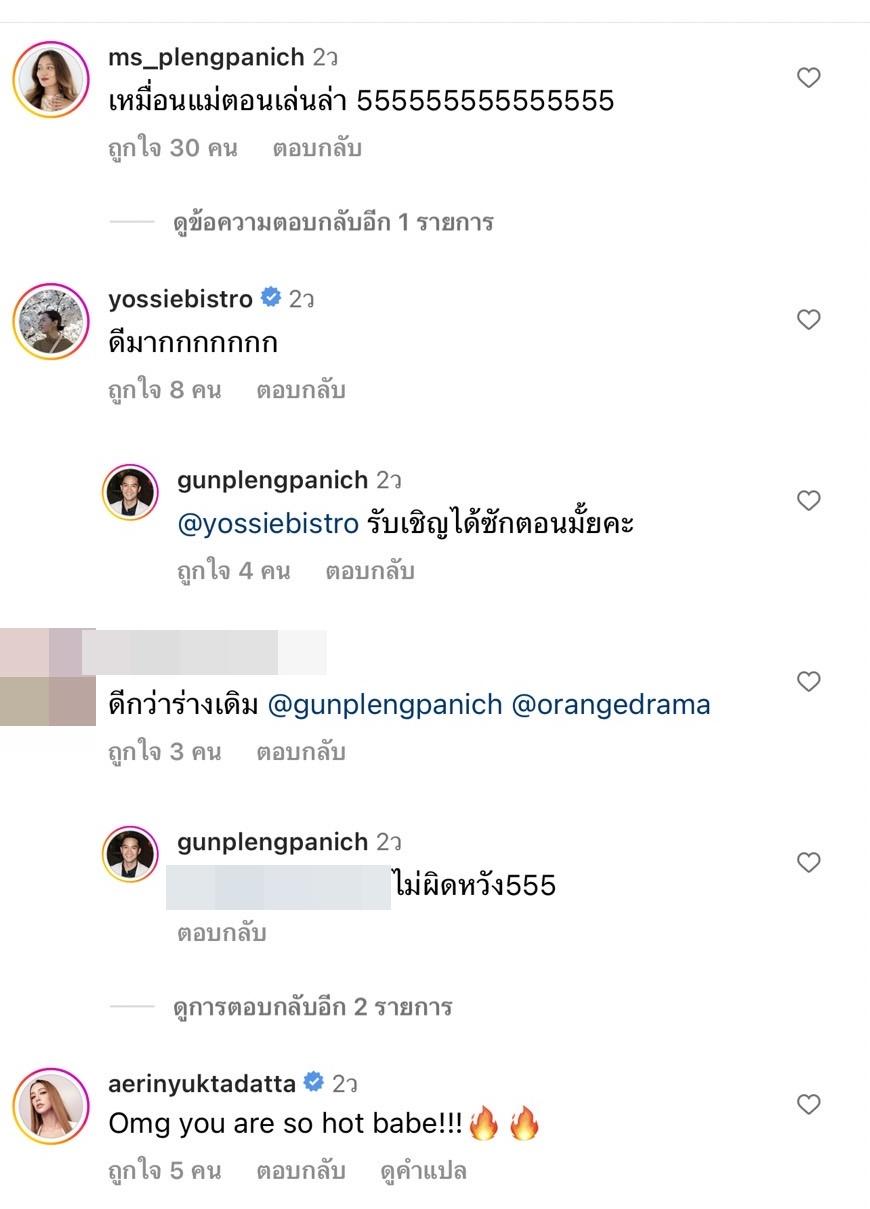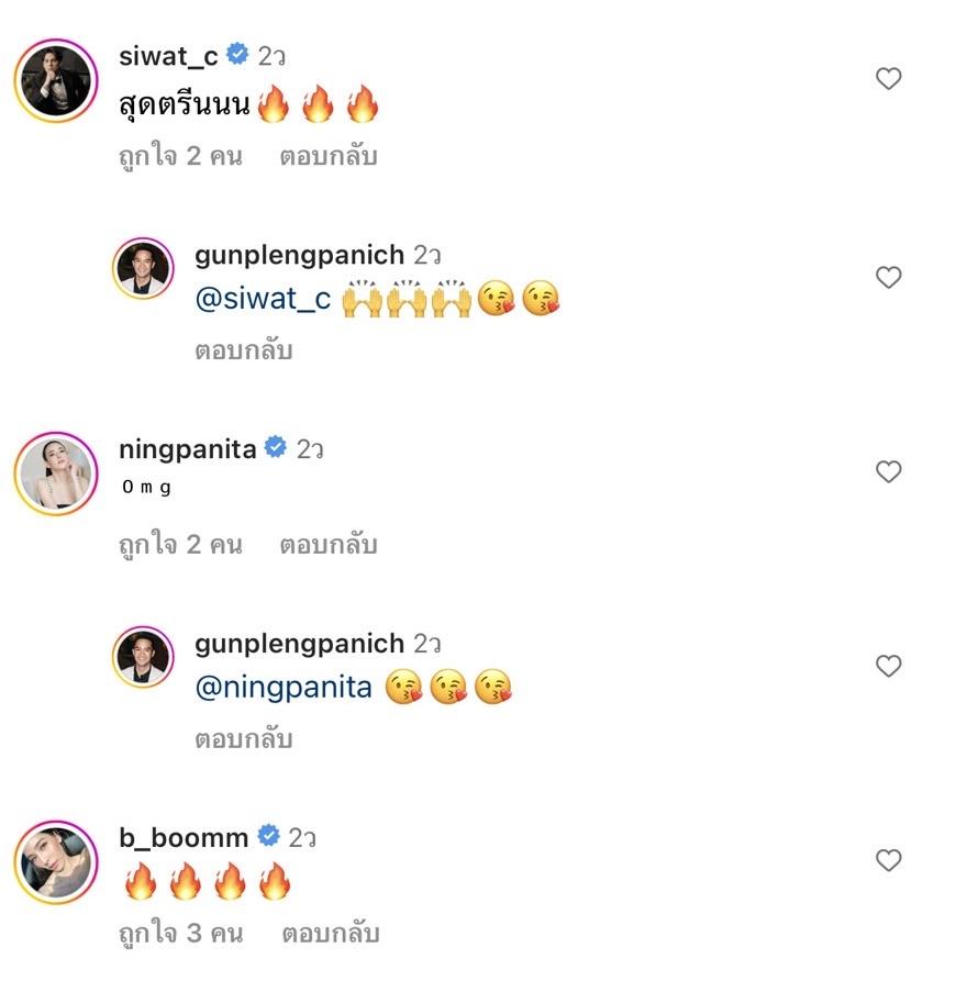 โดยมีคนในวงการบันเทิงเข้ามาแสดงความคิดเห็น อาทิ เอมี่ กลิ่นประทุม “Dokssss mak i loveeeeee”, แมท ภีรนีย์ “สวยมากกก”, กาละแมร์ พัชรศรี “ว้ายยยยยยยย เหมือนนนนนน”, ซี ศิวัฒน์ “สุดตรีนนน”, หนิง ปณิตา “Omg”, จ๋า ยศสินี “ดีมากกกกกกก” ฯลฯ