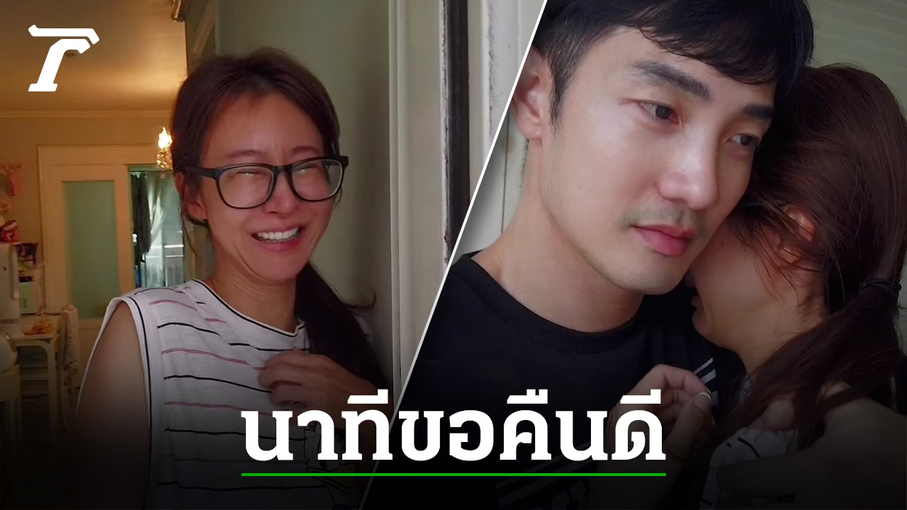 อ้วนถามมะม่วงว่ารู้สึกยังไงที่อ้วนมาหาที่นี่ มะม่วงบอกว่าตกใจ จริงๆ เมื่อคืนนอนตี 4 ตื่นตอนเที่ยง ไม่รู้เมื่อคืนทำไมถึงนอนไม่หลับ อ้วนบอกว่าจะหาดอกไม้แต่หาไม่เจอ จะซื้อเพื่อมาขอโทษ เลยให้เงิน 160,000 แทนคำขอโทษ ก่อนจะบอกว่า “ผมรู้ว่าผมผิด แต่อยากให้คุณปรับด้วยเหมือนกัน สิ่งที่จะขอจากคุณ คือ คุณรักและห่วงลูกมากเกินไปจนไม่สนใจความรู้สึกผม ขอให้คุณให้ความรักผมบ้าง เราจะคุยกันดีๆ และจะรักกัน คลิปนี้จะเป็นพยานความรักของเราตลอดไป” พร้อมทั้งเกี่ยวก้อยกัน