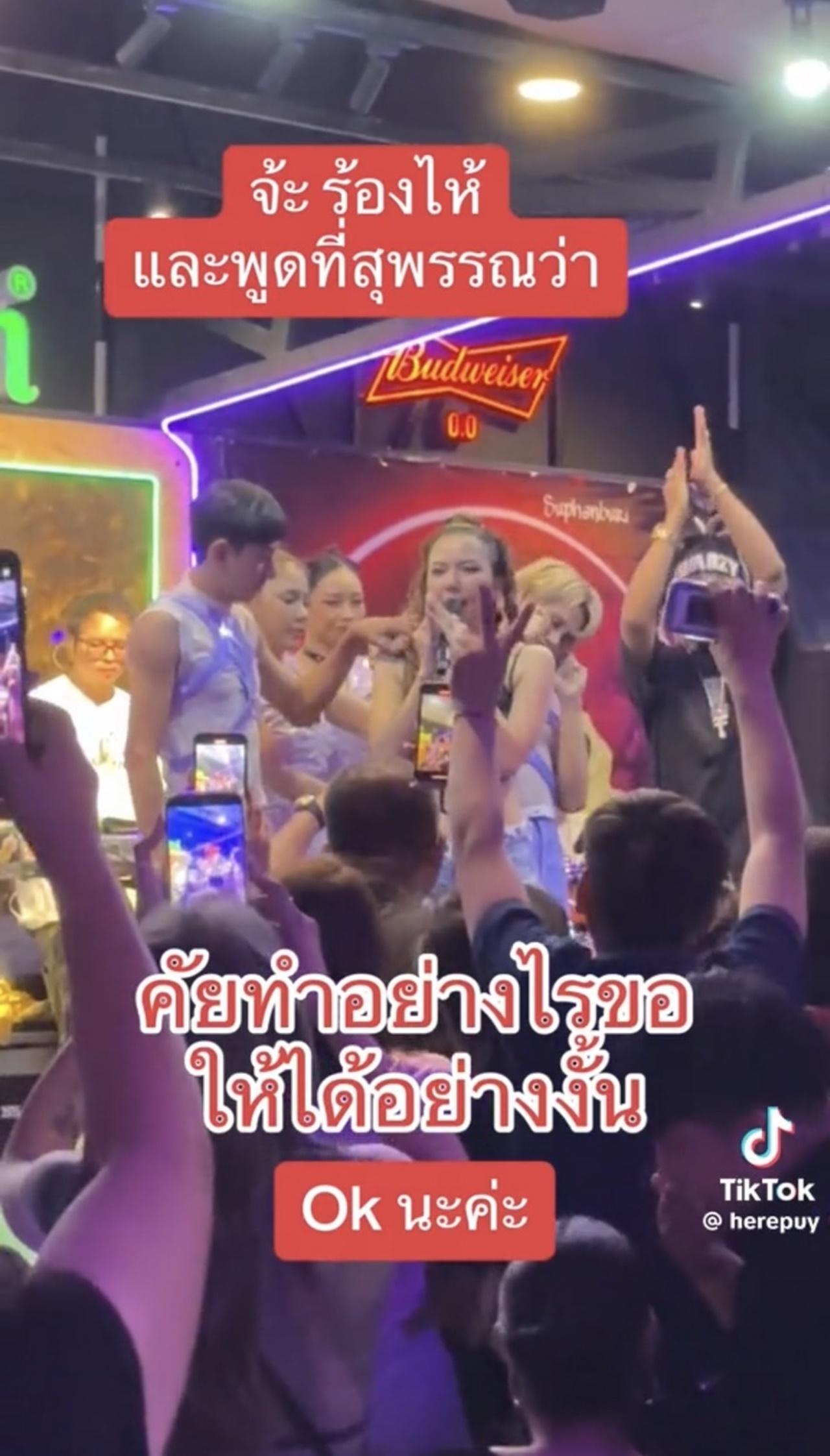 และในโลก TikTok ได้มีผู้ใช้รายหนึ่งที่ใช้ชื่อ herepuy ได้โพสต์คลิปในงานคอนเสิร์ตของ จ๊ะ นงผณี ที่ จ.สุพรรณบุรี ซึ่งเป็นช่วงที่นักร้องสาวได้กล่าวทั้งน้ำตาบนเวทีต่อหน้าแฟนเพลงที่มาให้กำลังใจ จ๊ะ ได้พูดว่า