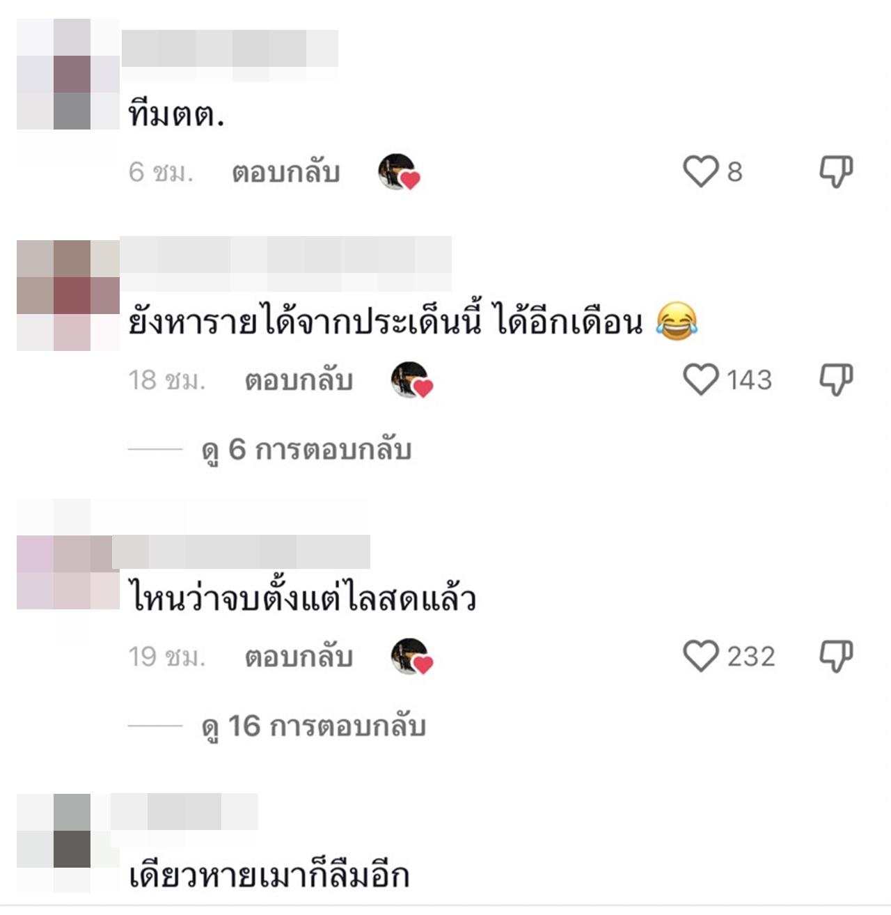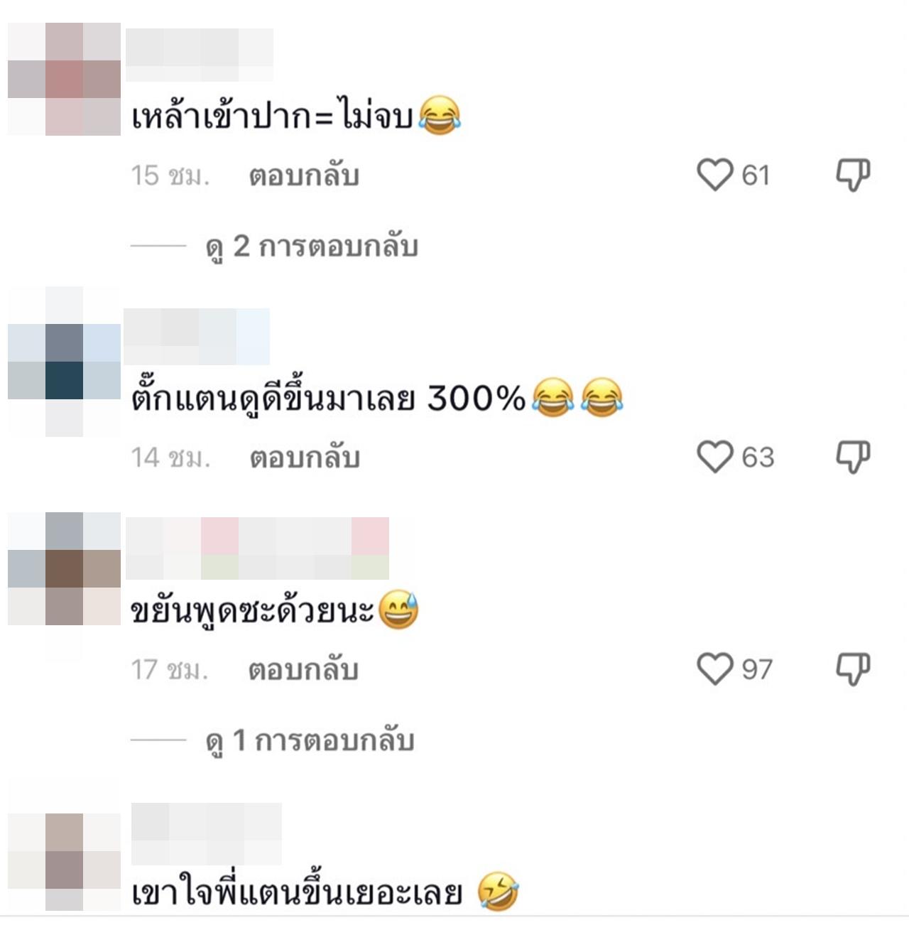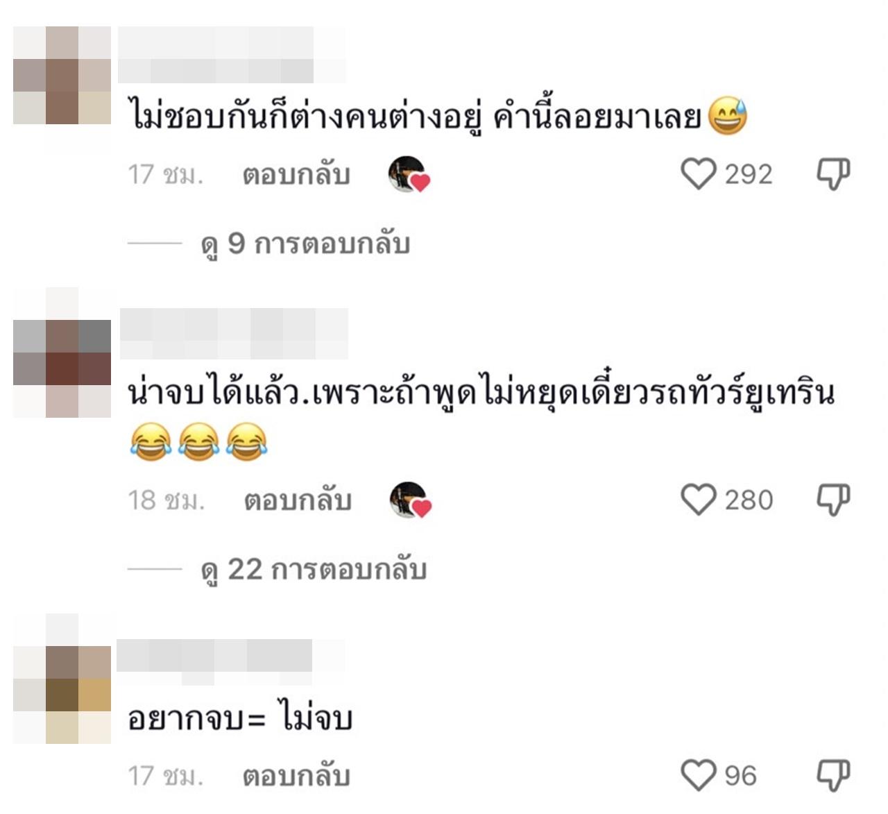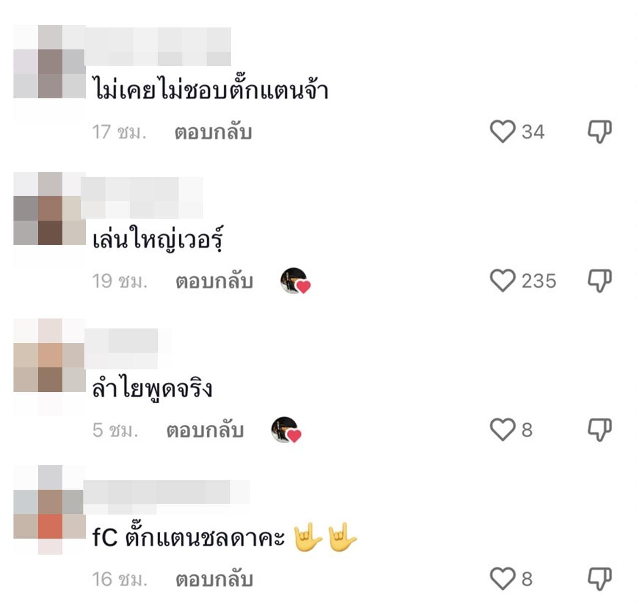 แต่หลังจากที่คลิปดังกล่าวได้โพสต์ไป กลับมีดราม่าขึ้น โดยหลายคนต่างมองว่า รู้สึกไม่โอเค จะจบแบบน่ารักมากกว่านี้ ถ้าไม่มาต่อความยาวสาวความยืด แถมยังมีคอมเมนต์ชมสาวตั๊กแตนอีกด้วย ที่วางตัวดีมาก อาทิ ต่อความยาวสาวความยืดแทนที่จะจบๆน่ารักๆไป, เยอะไปนะ ไม่จบ ตั๊กแตนดูดีขึ้นมาเลยค่ะ, ตั๊กแตนดูดีขึ้นมาเลยค่ะ, น่าจบได้แล้ว.เพราะถ้าพูดไม่หยุดเดี๋ยวรถทัวร์ยูเทิร์น, ไม่ชอบกันก็ต่างคนต่างอยู่ คำนี้ลอยมาเลย, เป็นกำลังใจให้ตั๊กแตน, ตั๊กแตนดูดีขึ้นมาเลย 300%, ชอบตั๊กแตนคะเป็นกำลังใจให้คุณตั๊กแตนเสมอ เป็นต้น.