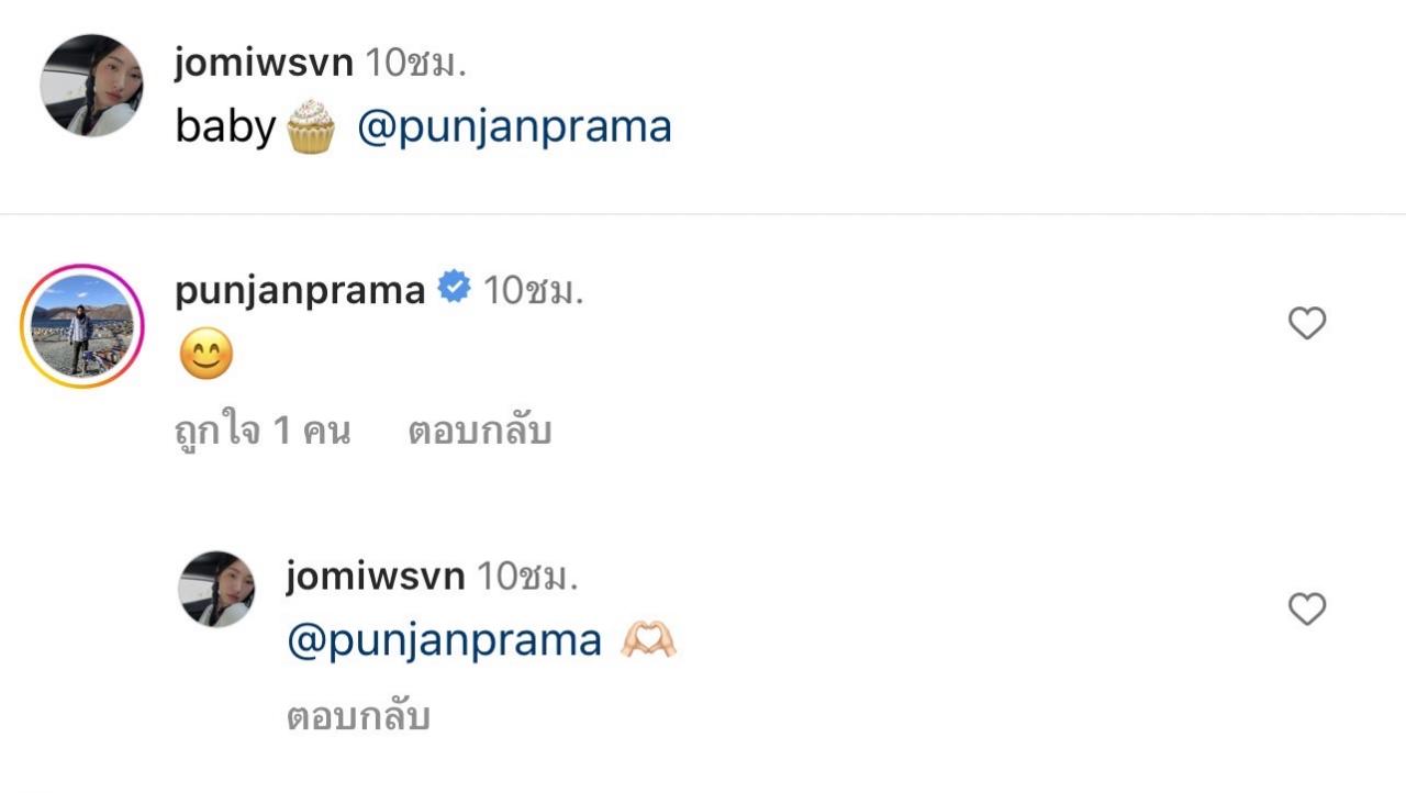 นอกจากนี้ ในอินสตาแกรมของ ปั้นจั่น ก็ได้โพสต์ภาพคู่กับ โจมิ ด้วยเช่นกัน และใส่แคปชั่นเป็นอีโมจิตาเป็นประกายรูปดาวด้วย เรียกว่าหวานฉ่ำจนคนโสดอิจฉาเลยจริงๆ.